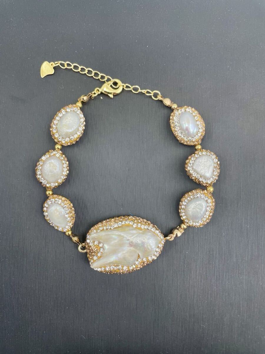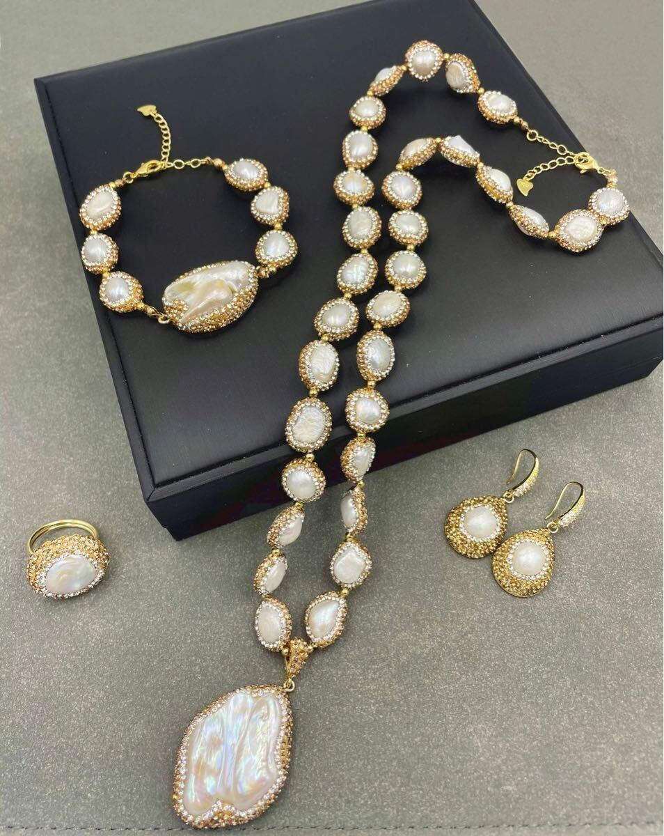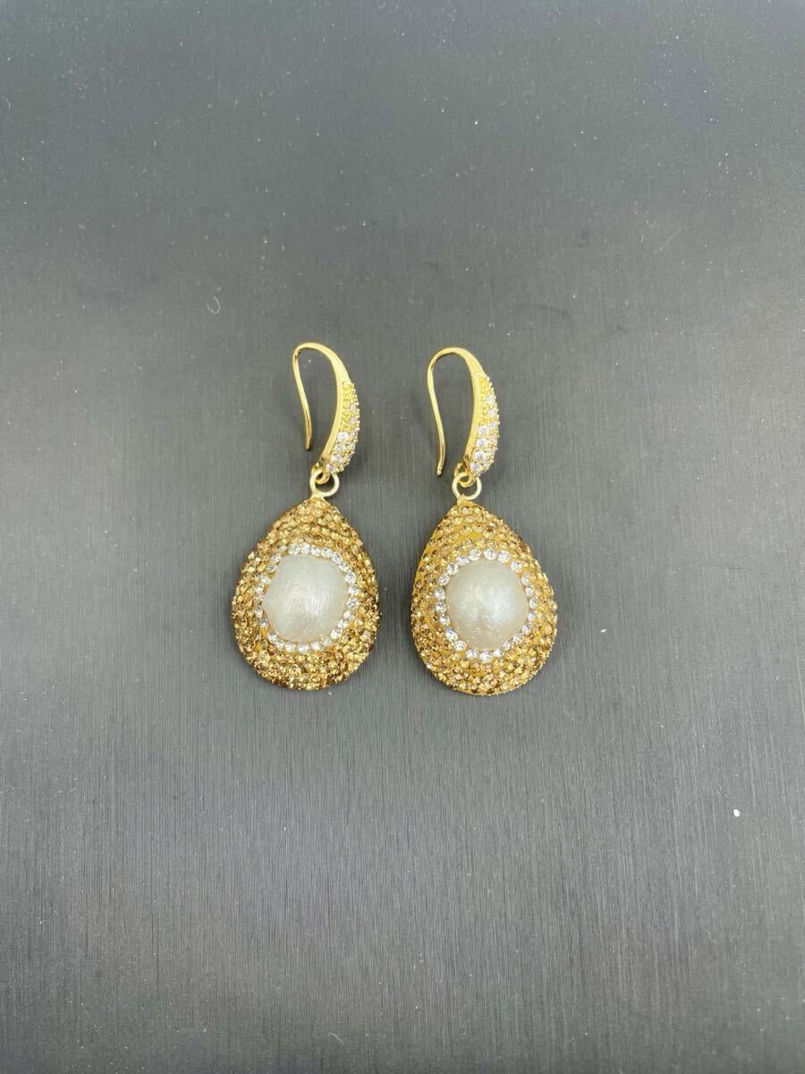 素材:銅金メッキ、ジルコニア、異形淡水真珠
