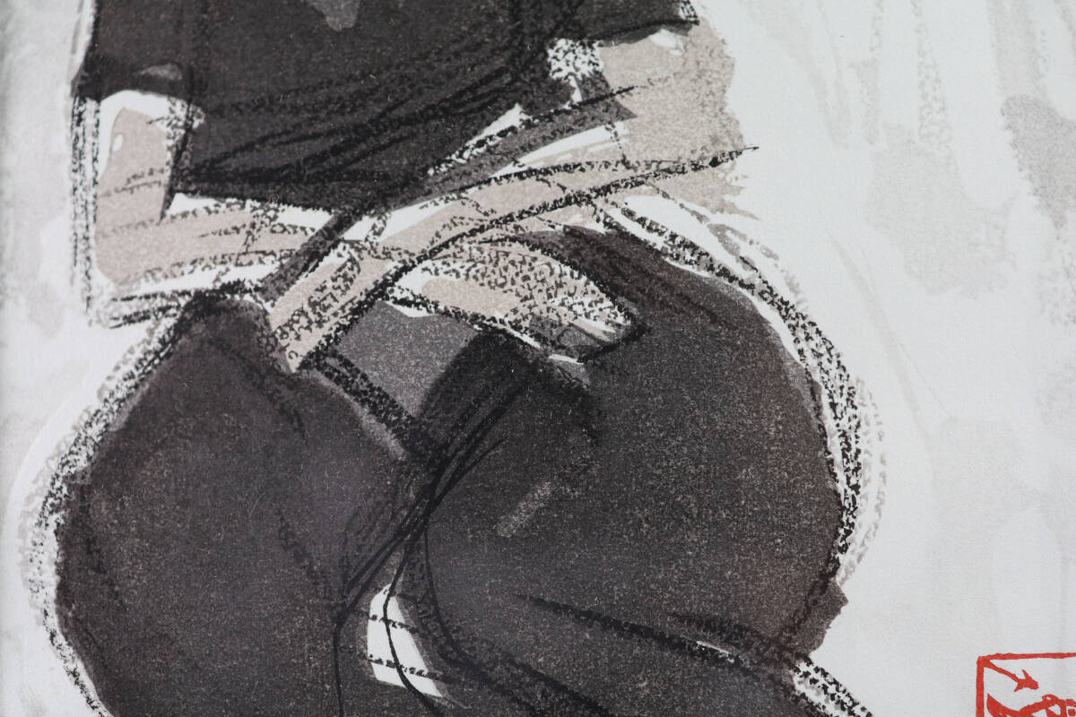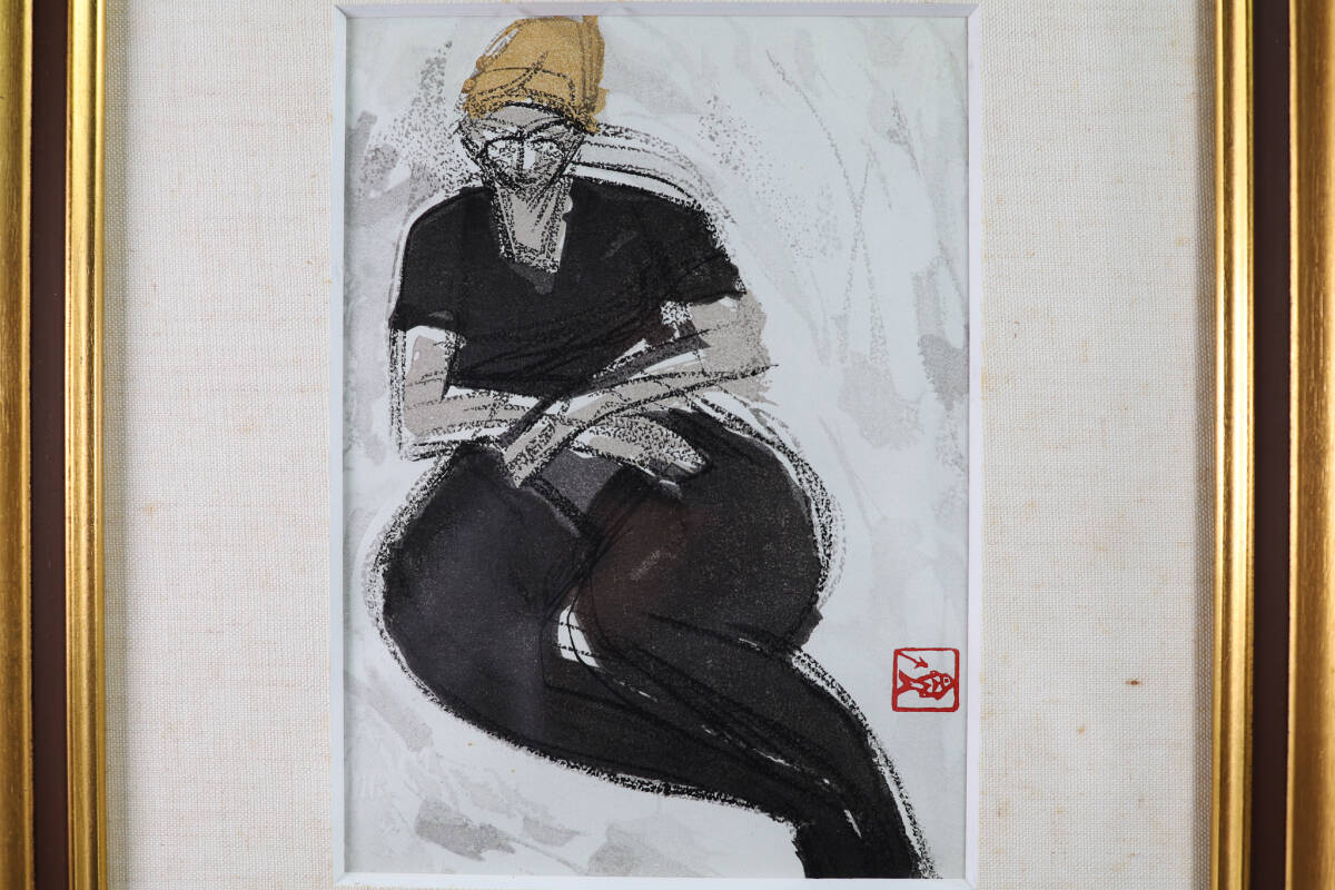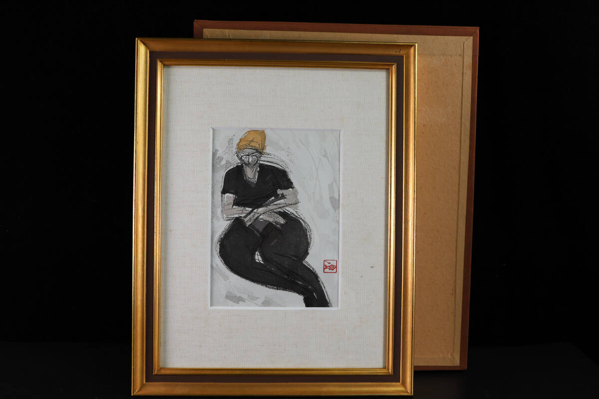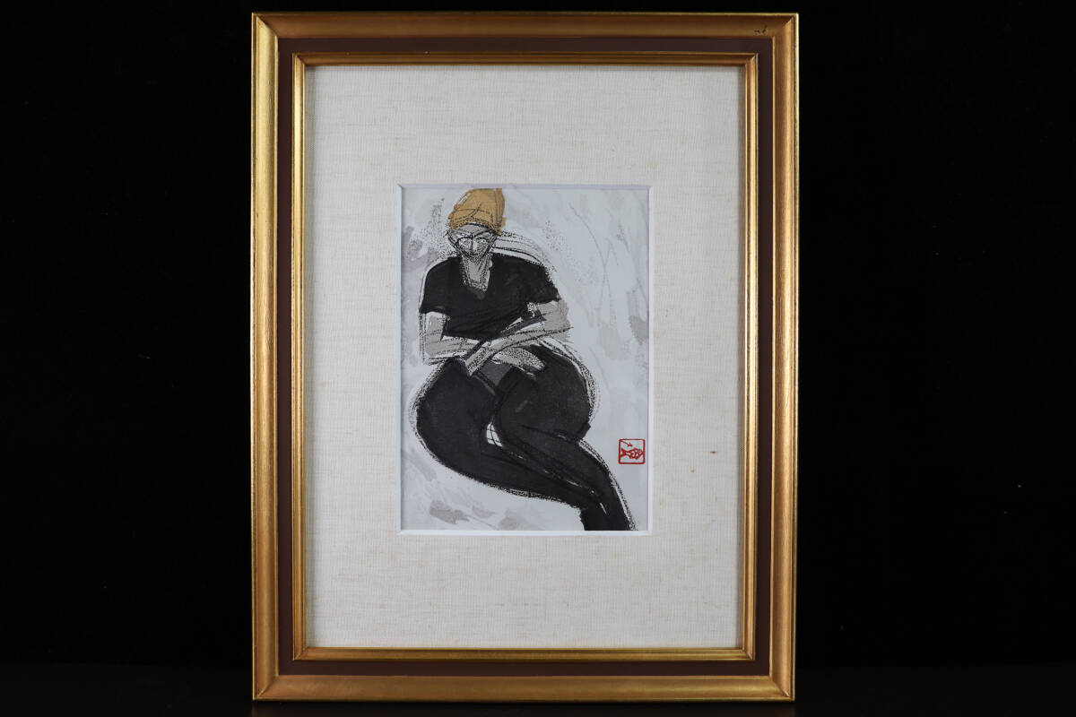 ◇雅◇ 真作保証 野口弥太郎 「黒いタイツ」 女性デッサン 木版画 1号 額装 タトウ箱 /FT.25.4 [I76] UN