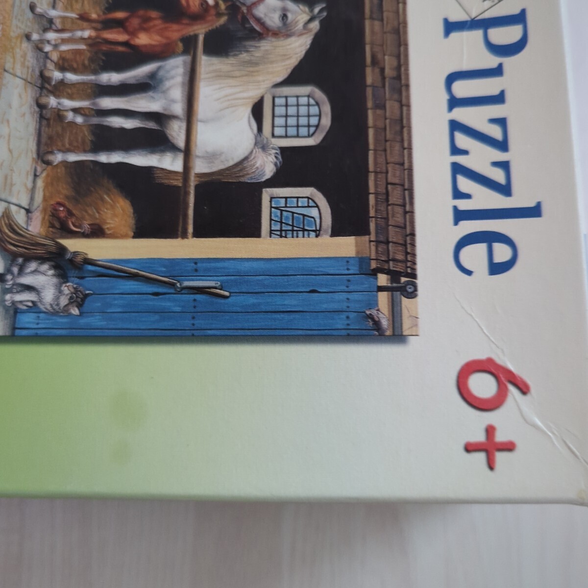 大きめの100ピースで家畜系動物がたくさんのイラストです。箱には少しシミやシワが有ります。
