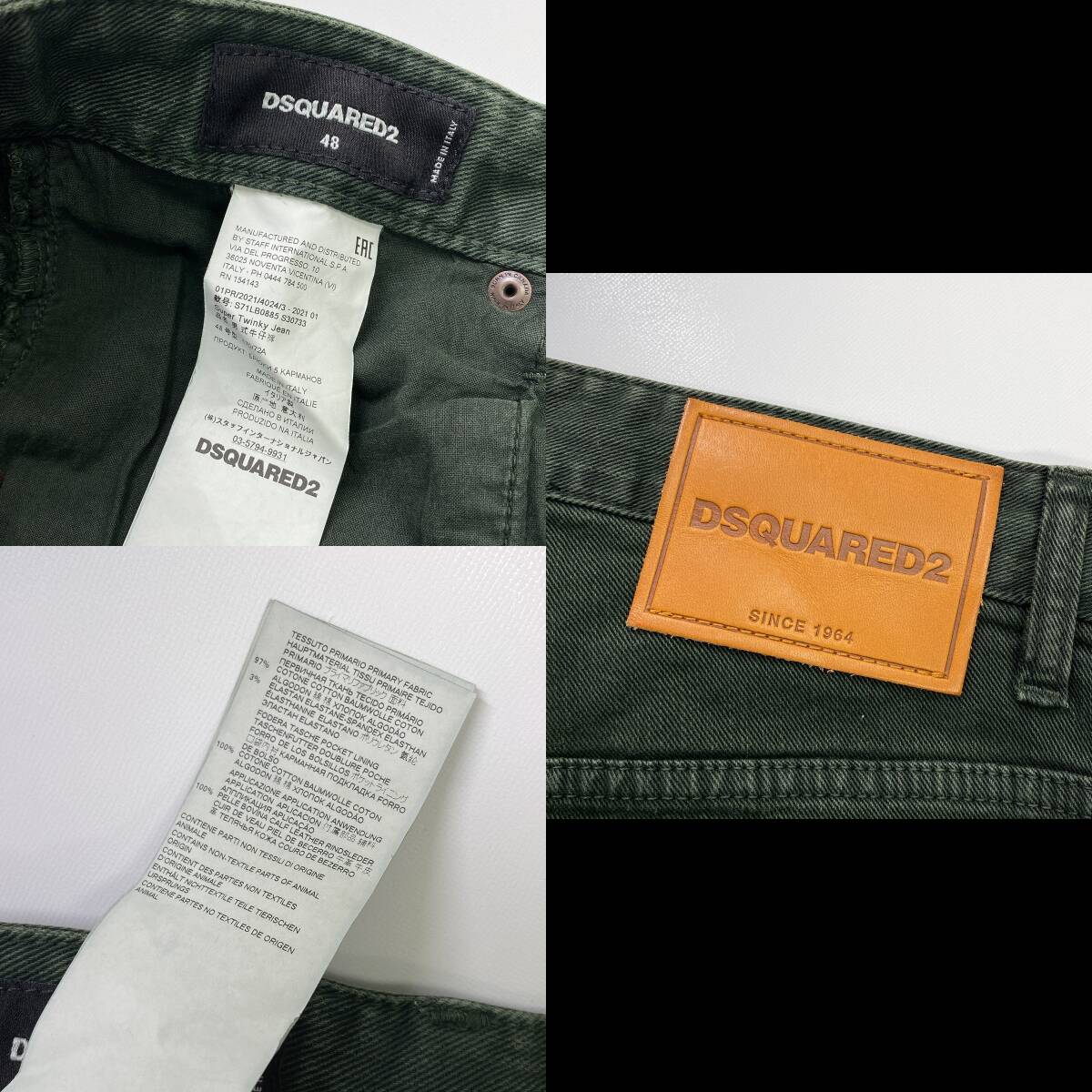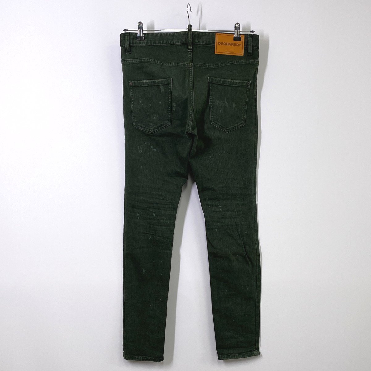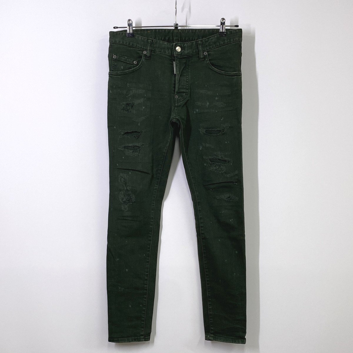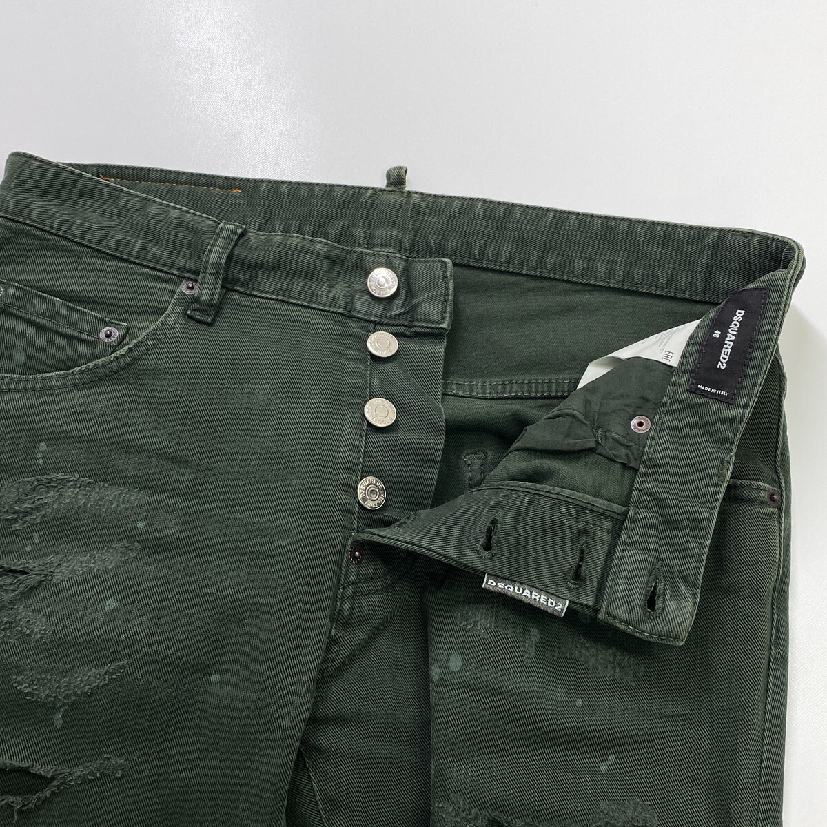 DSQUARED2 ディースクエアード SUPER TWINKY JEANS リペア加工 ストレッチ デニムパンツ 48 グリーン ジーンズ スリム テーパード JA3731
