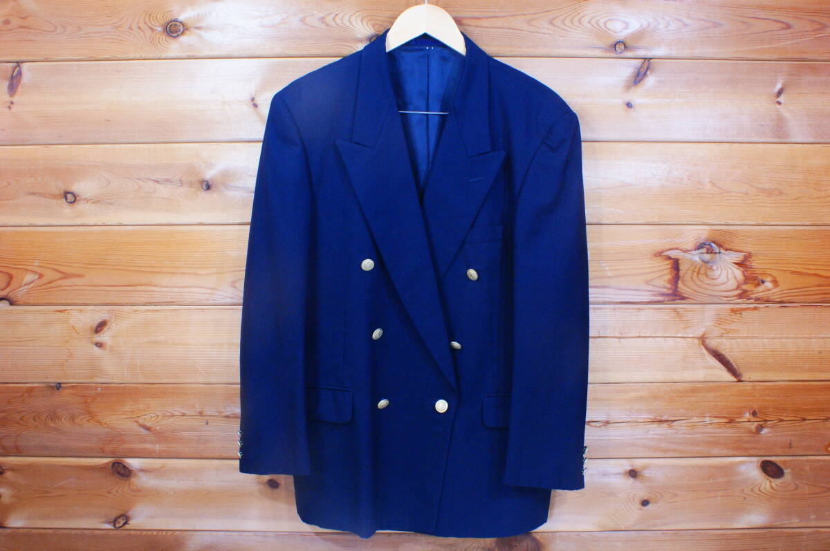 カッコイイ紺ブレザーLサイズの出品になります。表示サイズ Lサイズ素材は毛100%裏ポリエステルになります。