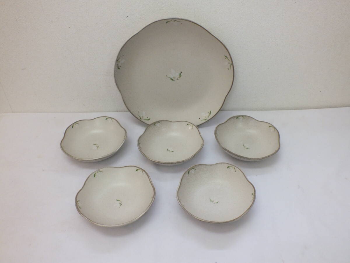 | ★未使用 たち吉 大皿 小皿 白い花柄 6枚セット★ | |||