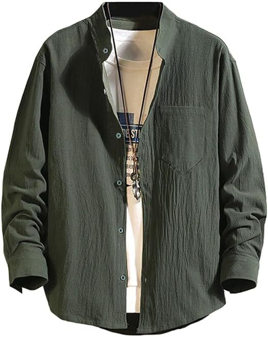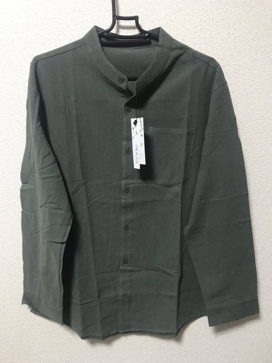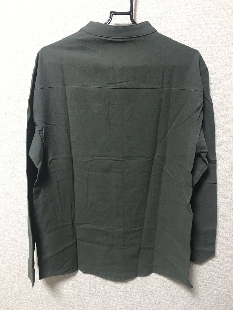 シャツ メンズ 長袖 春 カジュアル おしゃれ 綿麻 無地 L