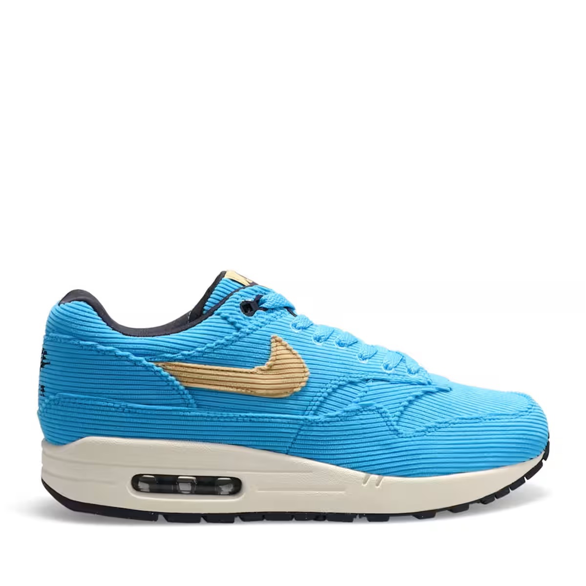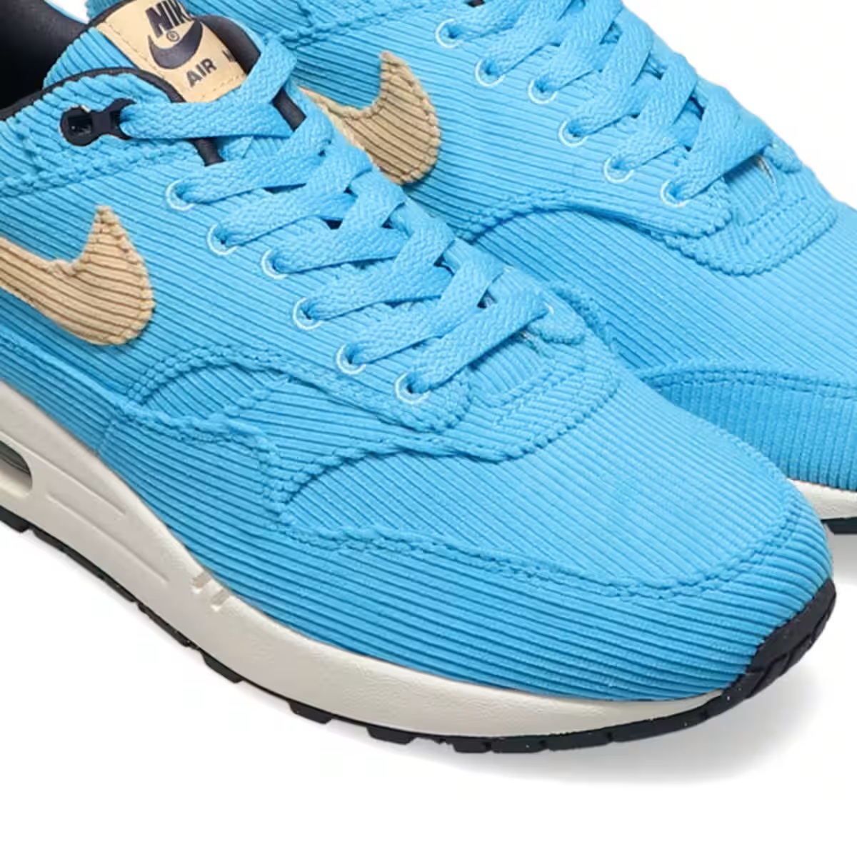 アッパーをコーデュロイ素材で構築した1足がラインナップ爽やかなライトブルーの細畝がカジュアルと上品さを演出革新的なランニングシューズとしてデザインされたAIR MAX 1を、“あの”AIR MAX 97を彷彿とさせるコーデュロイ素材で覆ったファッション性の高い本モデル。