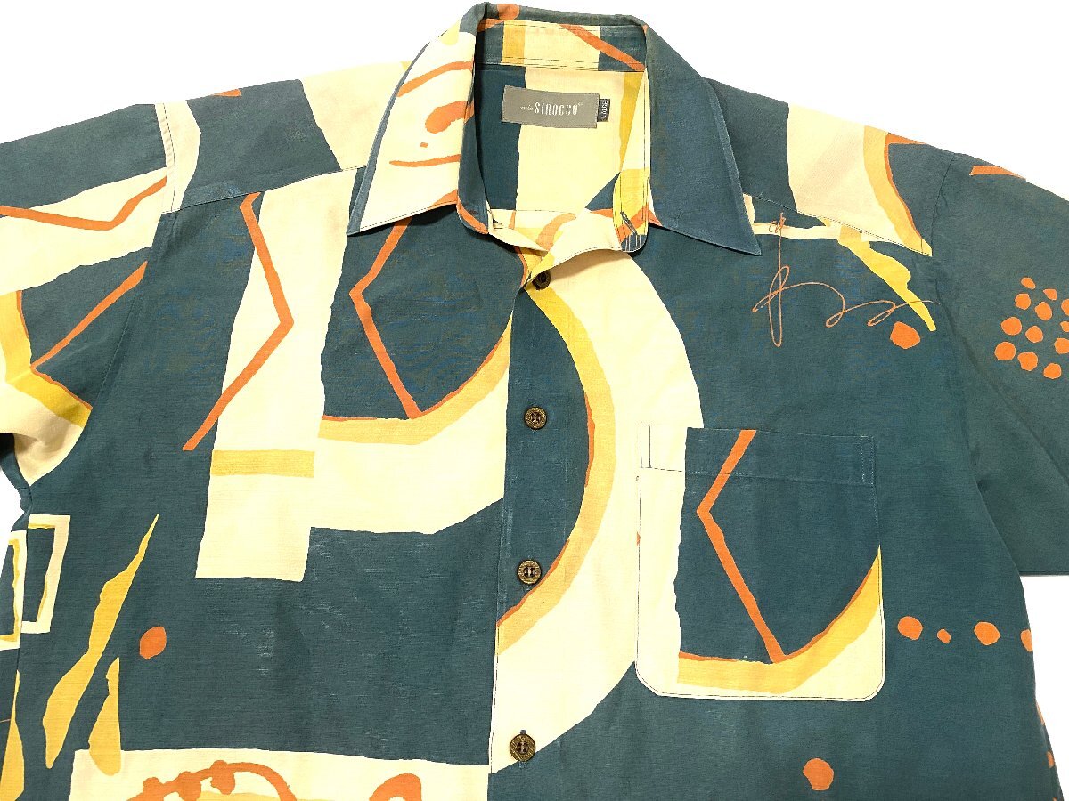 mio SIROCCO 半袖シャツ トップス 総柄 模様 ヴィンテージ レトロ 古着 メンズ Lサイズ オーバーサイズ 日本製 //6000