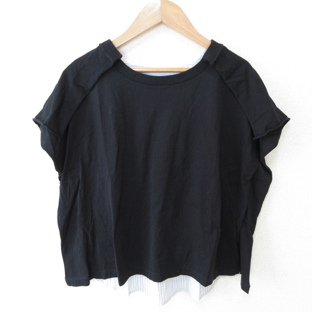 商品名:MM6 エムエムシックス メゾンマルジェラ 切替 フレンチスリーブ ドッキング カットソー プルオーバー S ブラック系