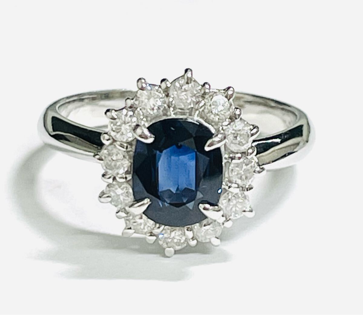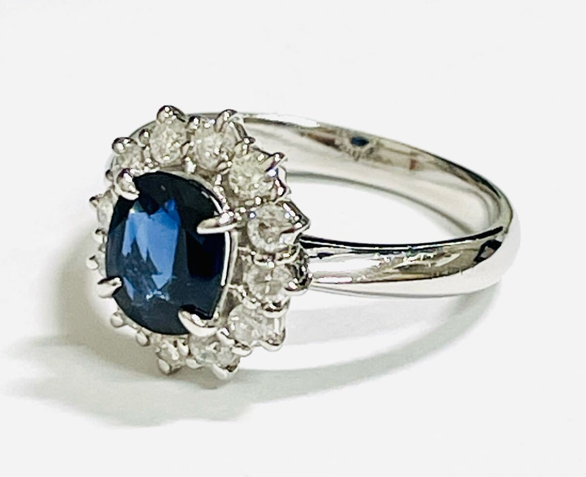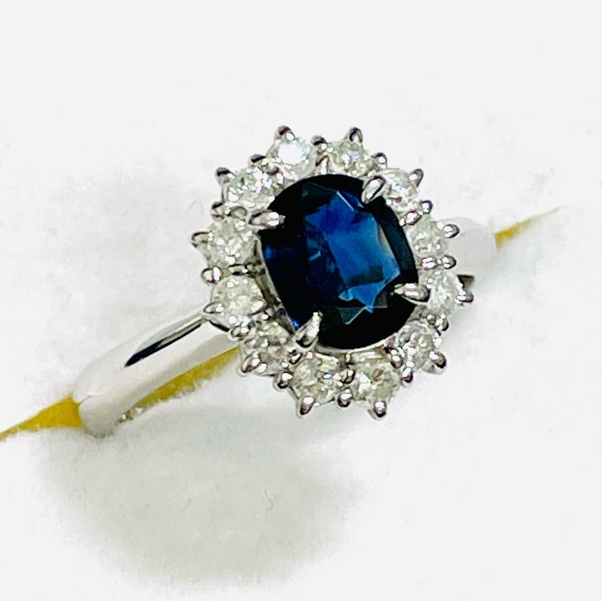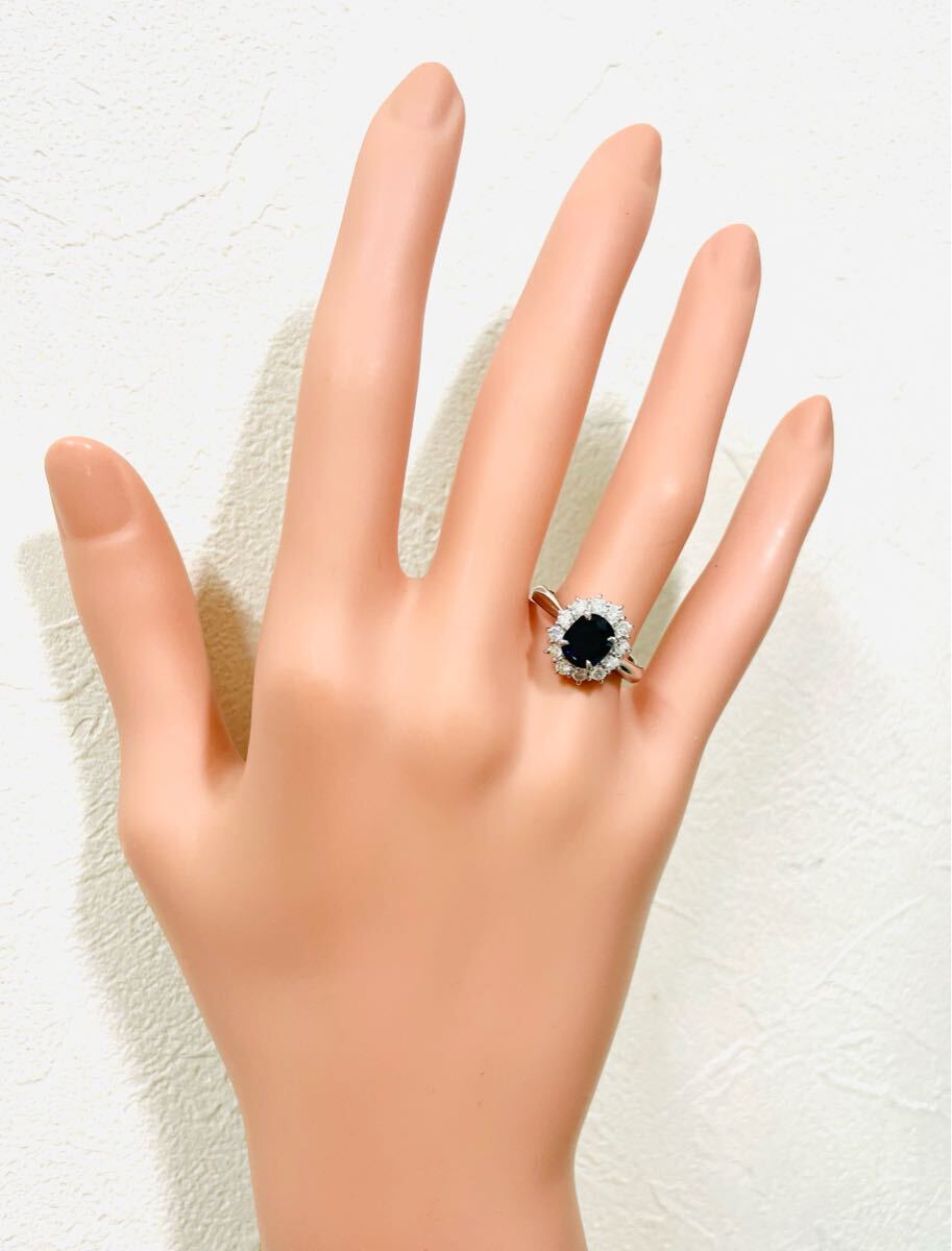 こちらは、Pt900台にサファイア1石&ダイヤ12石付きリングです。