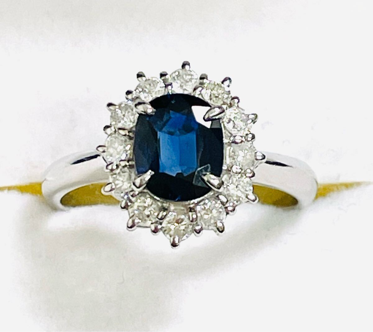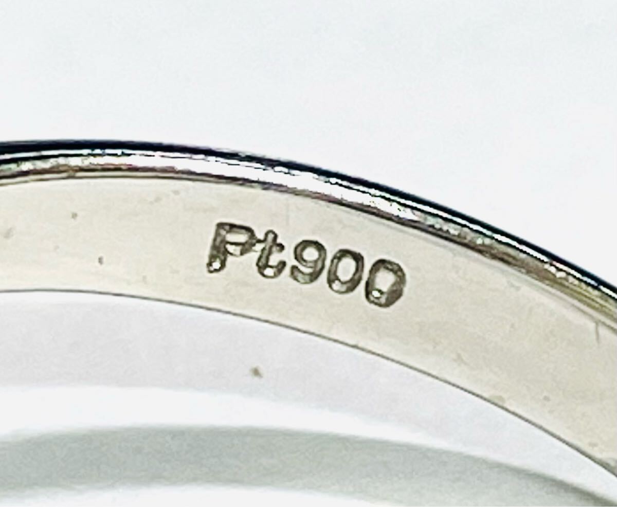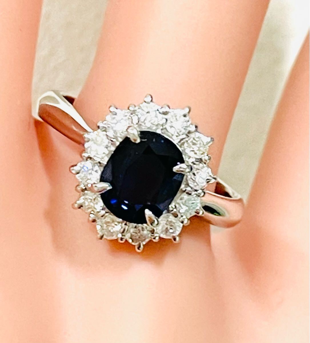 こちらは、Pt900台にサファイア1石&ダイヤ12石付きリングです。