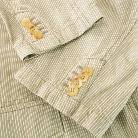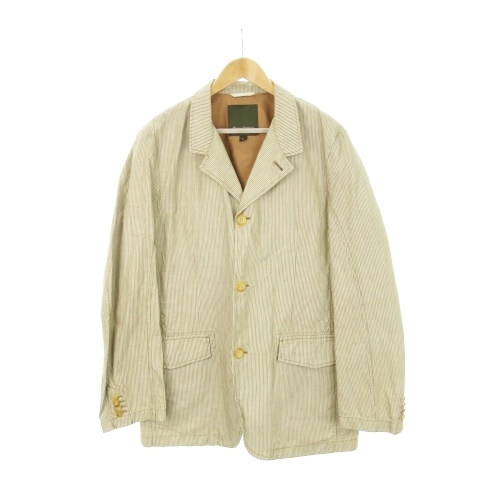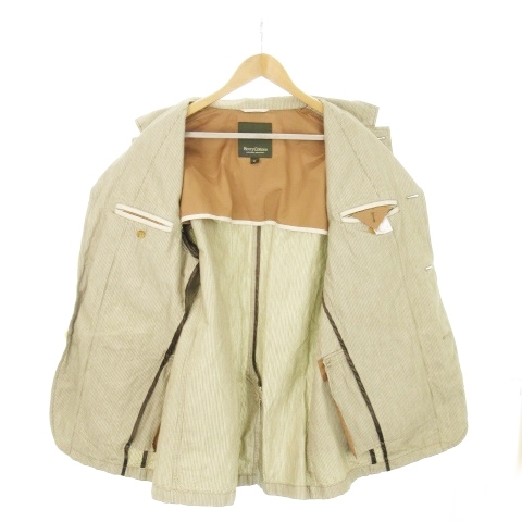 ヘンリーコットンズ HENRY COTTON'S テーラードジャケット ブレザー 背抜き コットン 麻 リネン混 ストライプ XL 茶 ブラウン /AH18