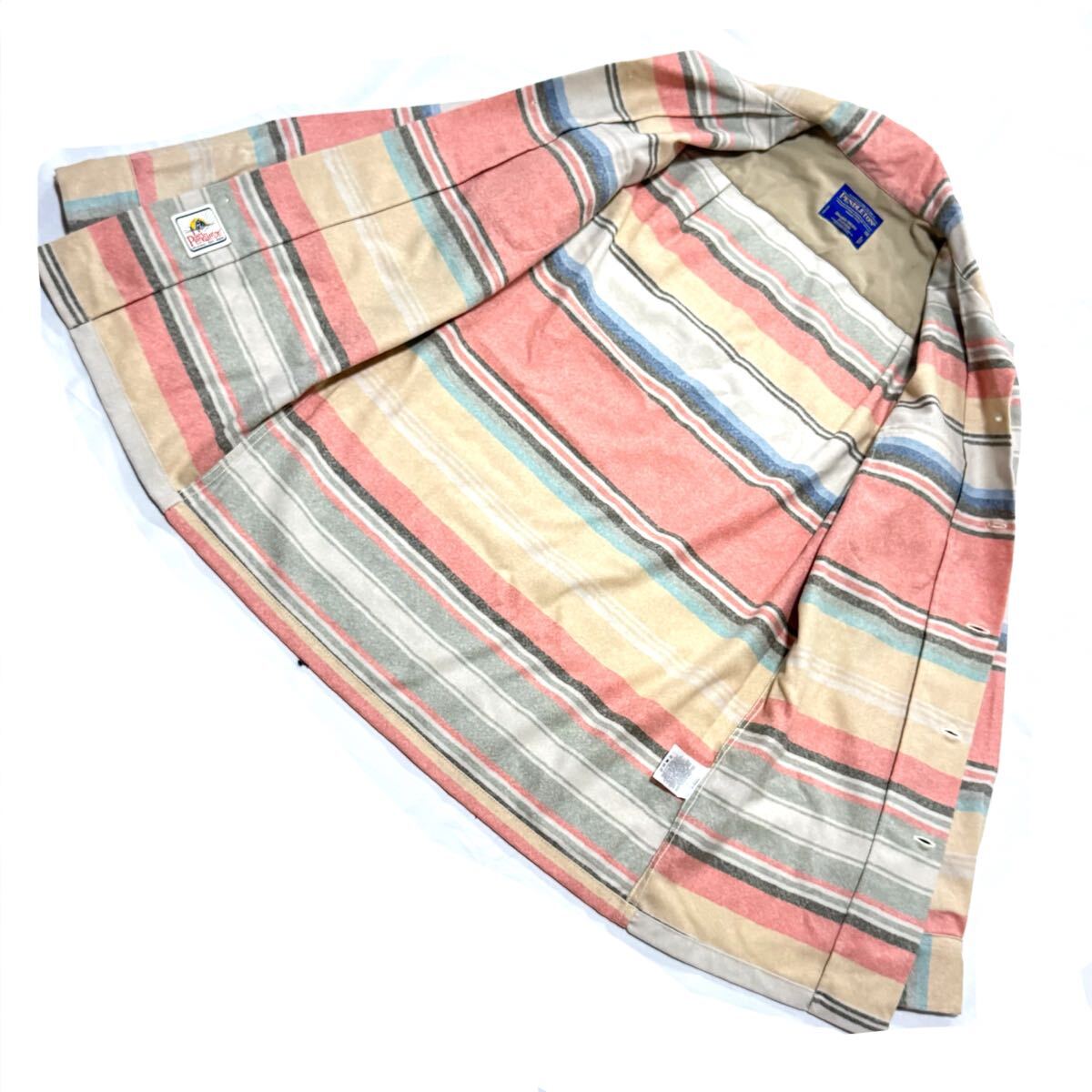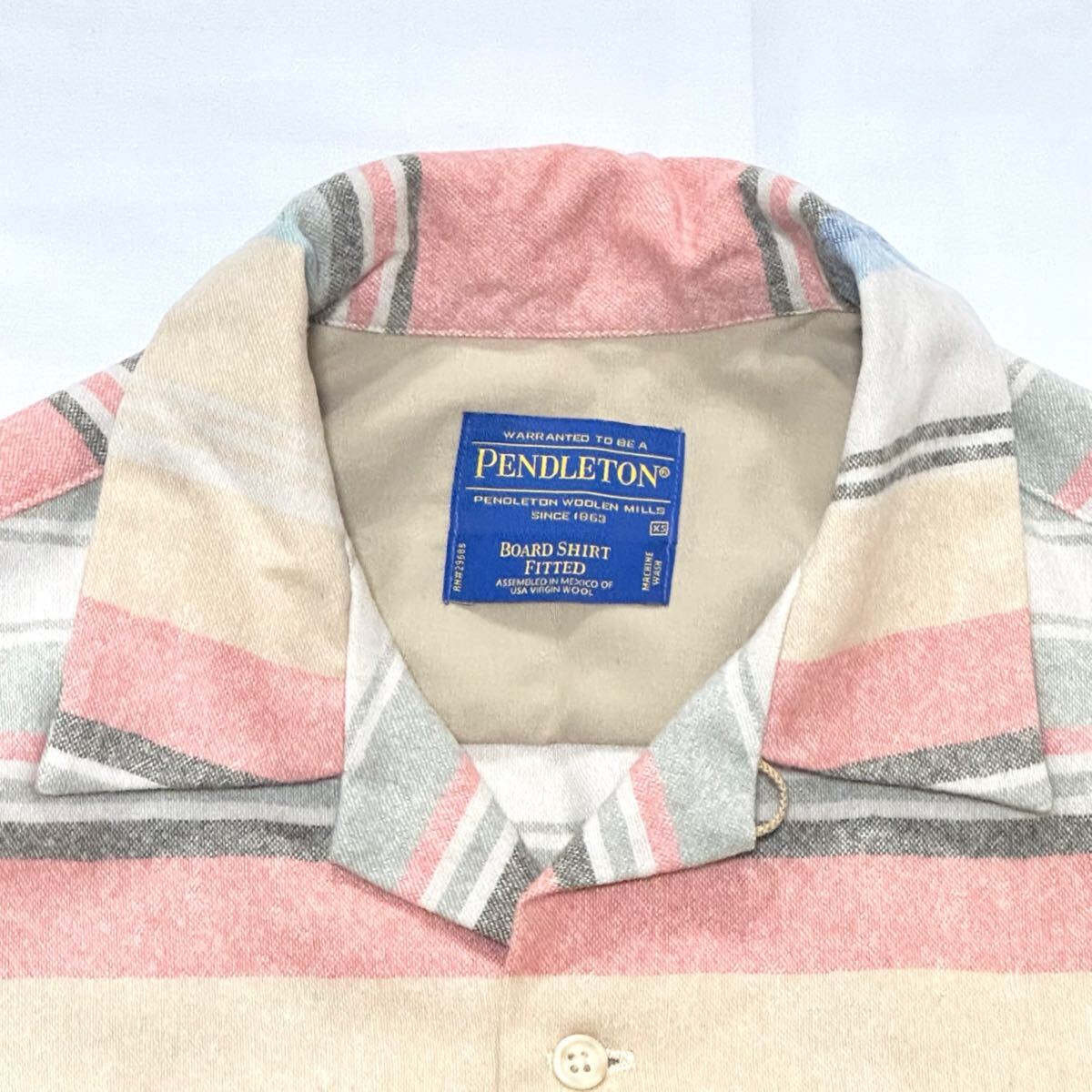 アメカジ・サーフスタイルの王道、PENDLETONの名作「Board Shirt」です。USA製バージンウールを使用し、開襟仕様のフィットシルエットが魅力。温かく肌触りの良いウール100%、秋冬にぴったり。特にXSサイズは希少で、小柄な方やレディースにもおすすめ。人気のマルチストライプ柄で一点物感が強く、古着ファン・サーフカルチャー好きにぜひ。