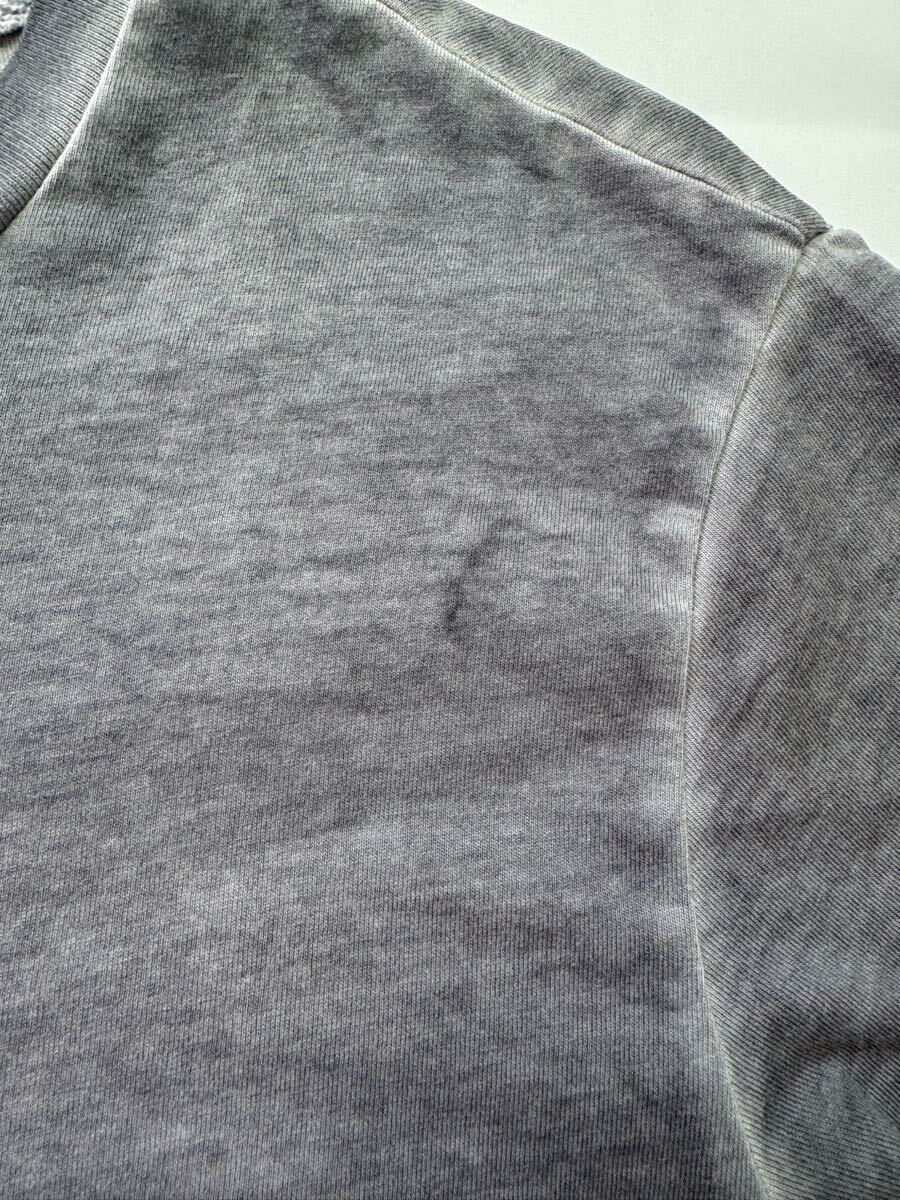 着用回数は少ないですが、画像3枚目にある左肩のエリアに2cm位の線状のシミがあります。