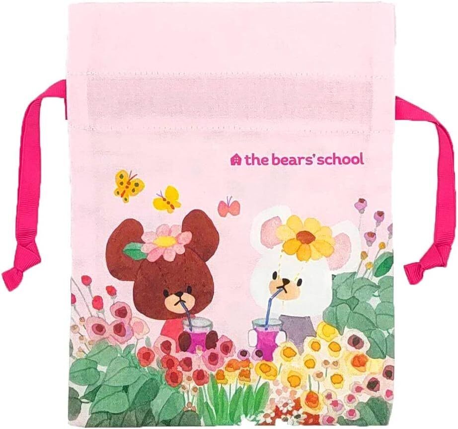くまのがっこう リボン巾着 2枚セット 巾着 巾着袋 小物入れ 絵本 ジャッキー&デイビッド フラワー くま 日本製