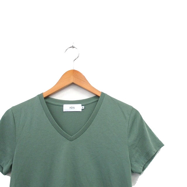 アズールバイマウジー AZUL by moussy Tシャツ カットソー 半袖 Vネック シンプル M グリーン 緑 /KT22 レディース