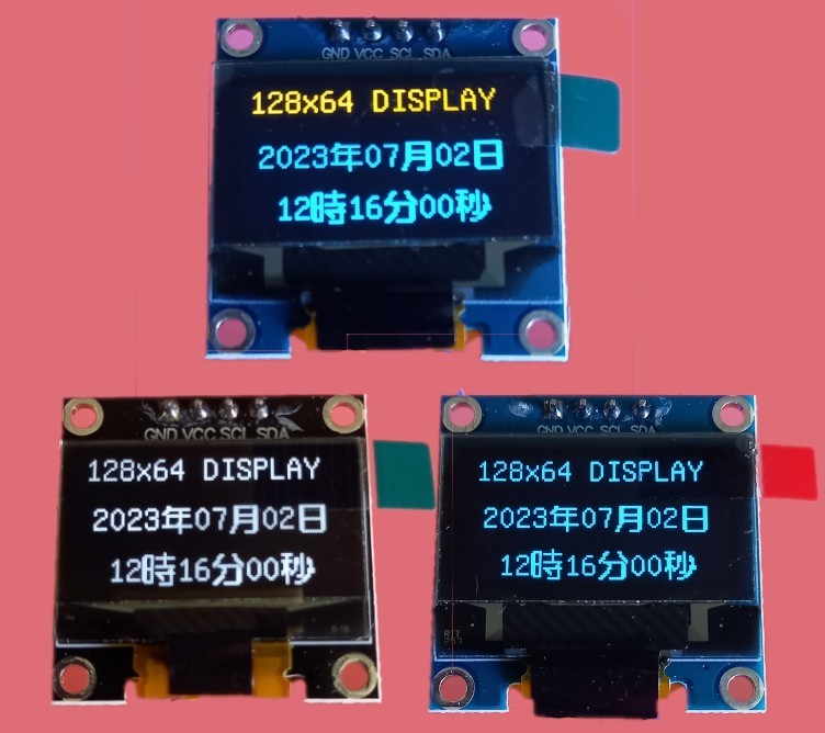 ①黄色と青色(128x16は黄色、残り128x48は青色)