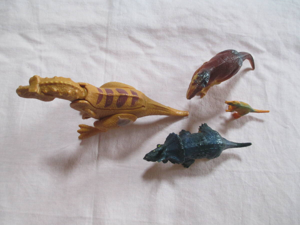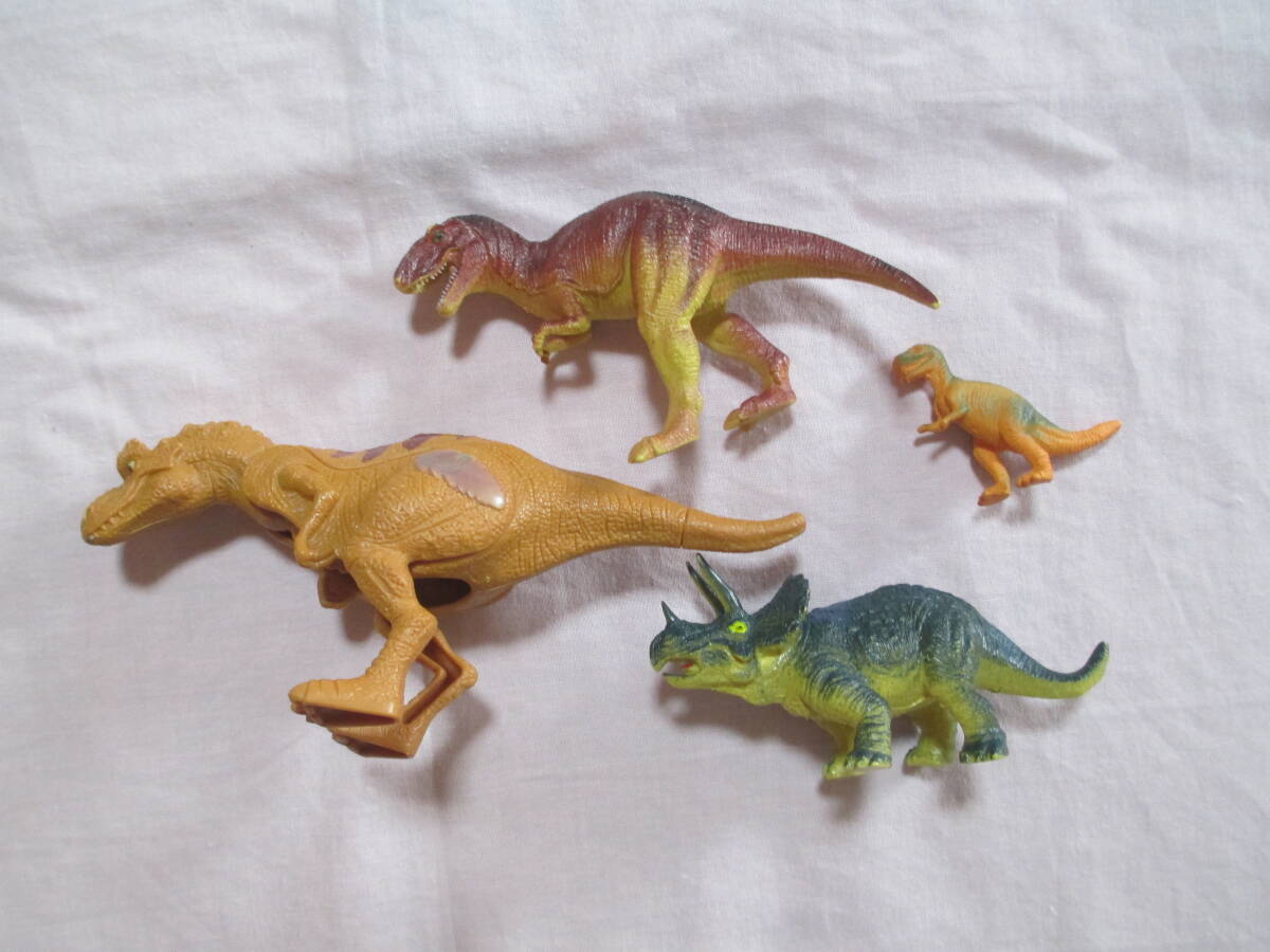 ゼンマイ式の恐竜は2体ありますが2体ともゼンマイは巻けますが動きは悪いです 元々どの程度動くのかわかりませんのでフィギュアとしての出品です