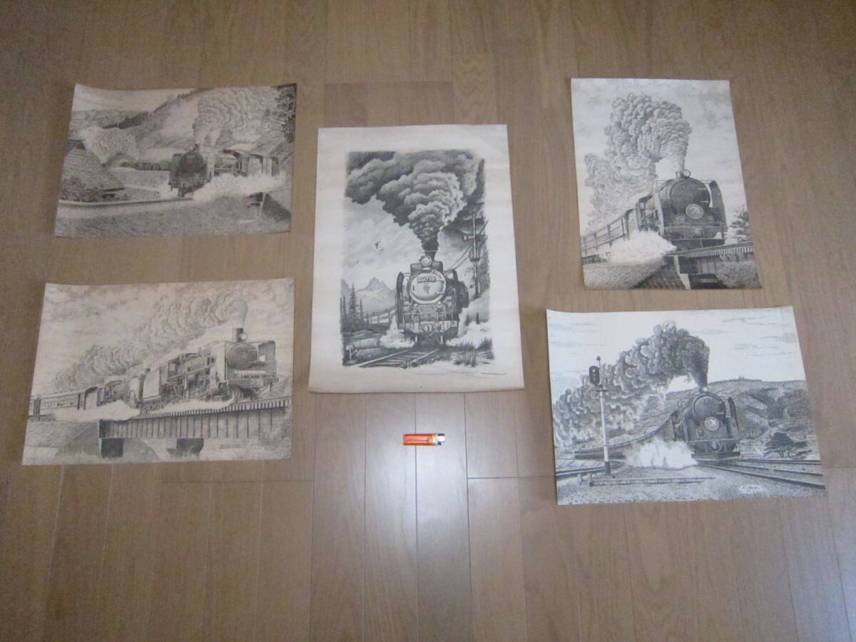 蒸気機関車イラストポスター 5枚 「D51(なめくじ・関西本線?)」「D51」「C62(つばめ)」「C62」「C57」 SL です。