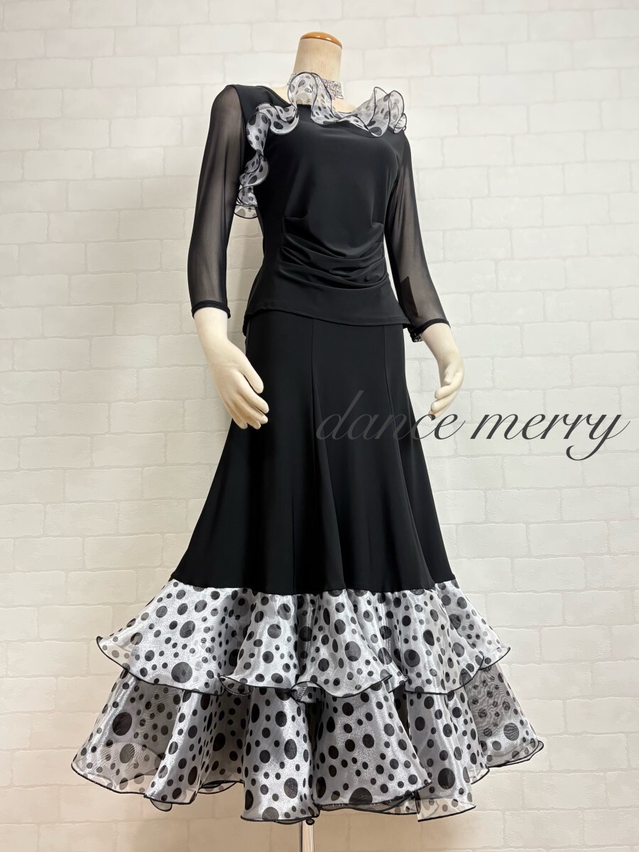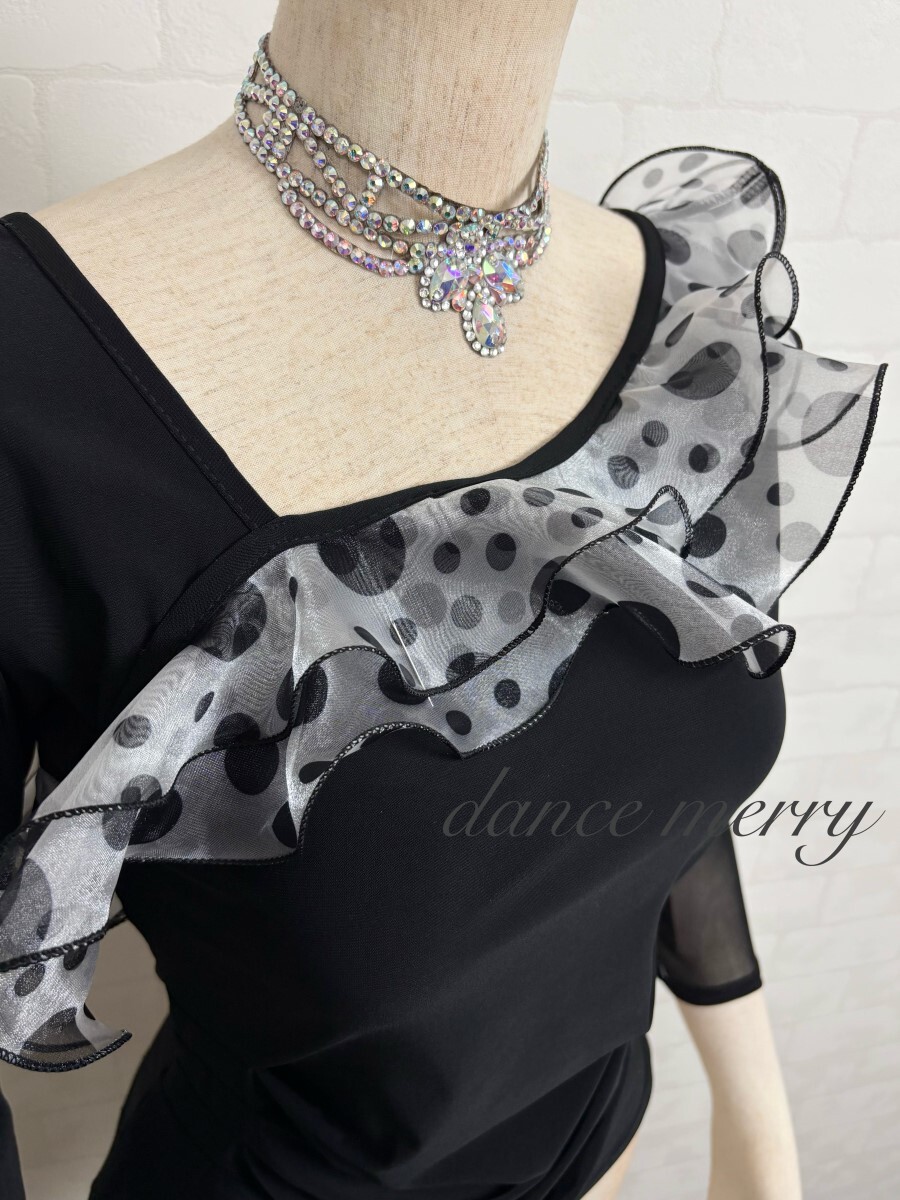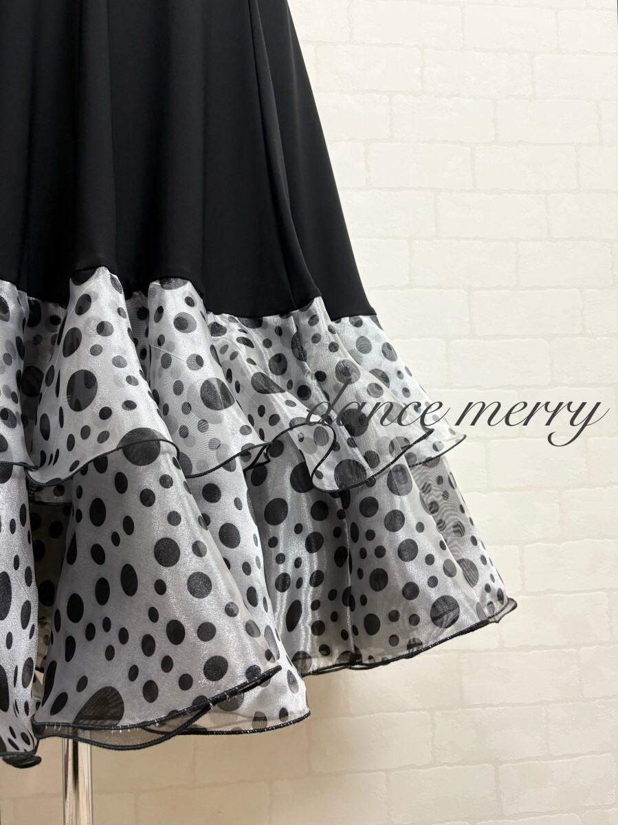 肌ざわりの良いストレッチ素材、メッシュ、オーガンジーを使用した社交ダンス ツーピースです。