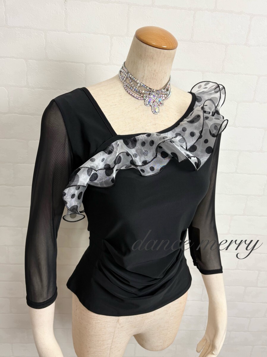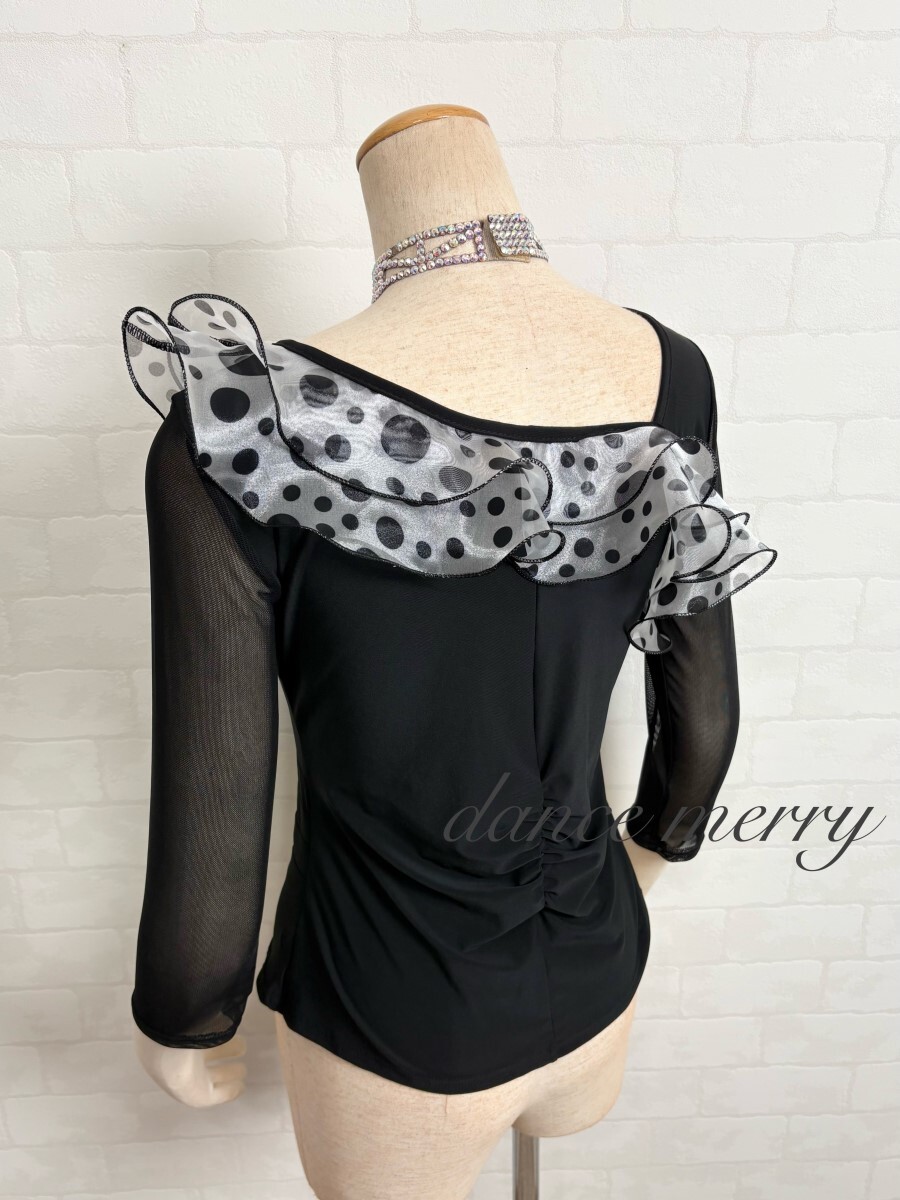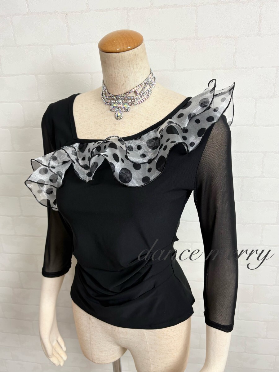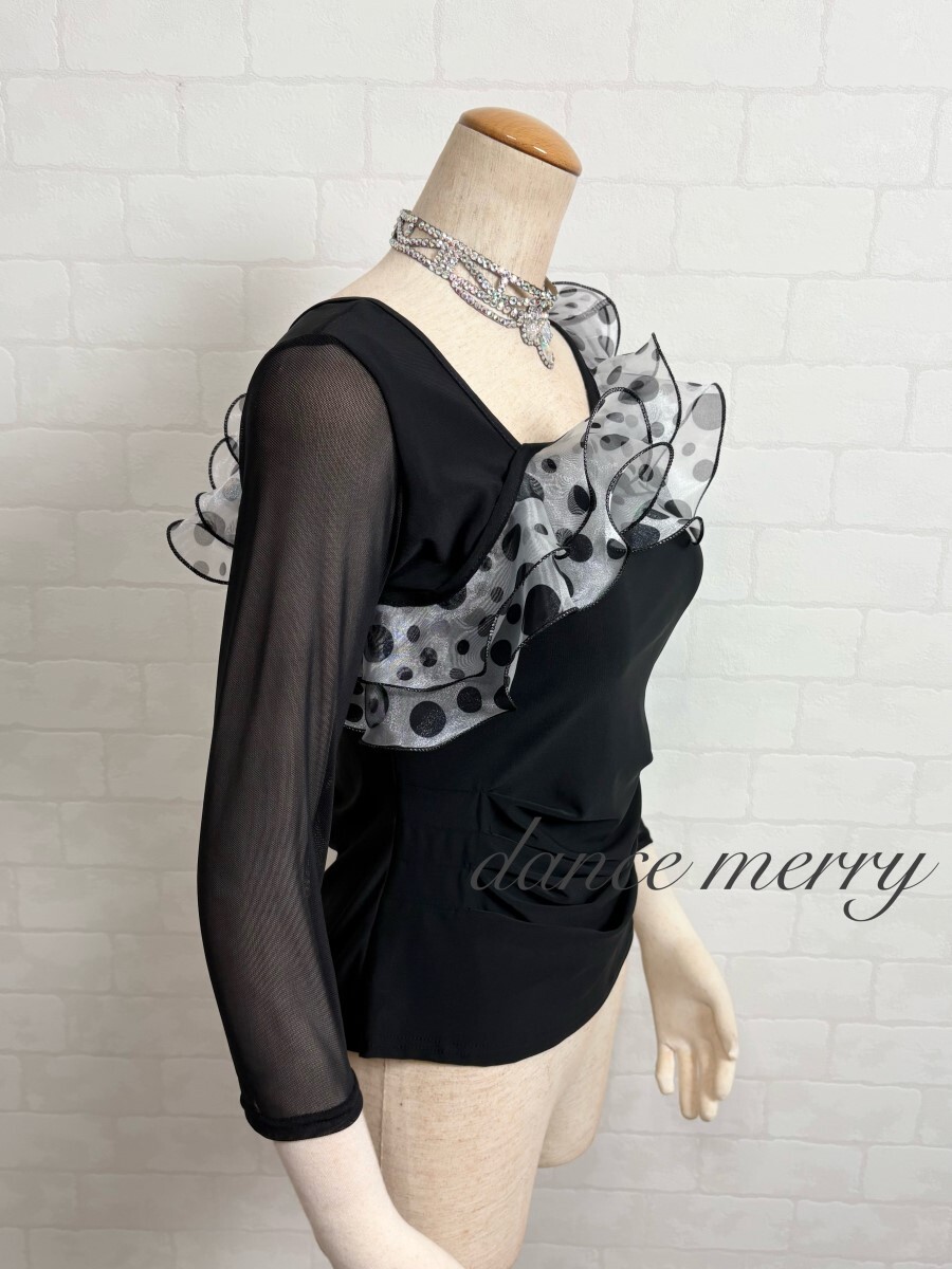 肌ざわりの良いストレッチ素材、メッシュ、オーガンジーを使用した社交ダンス ツーピースです。