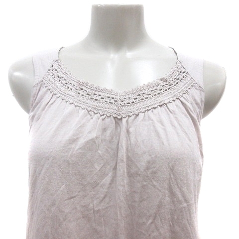 ユニクロ UNIQLO タンクトップ カットソー Uネック レース M ダスティピンク /MN ●RY レディース