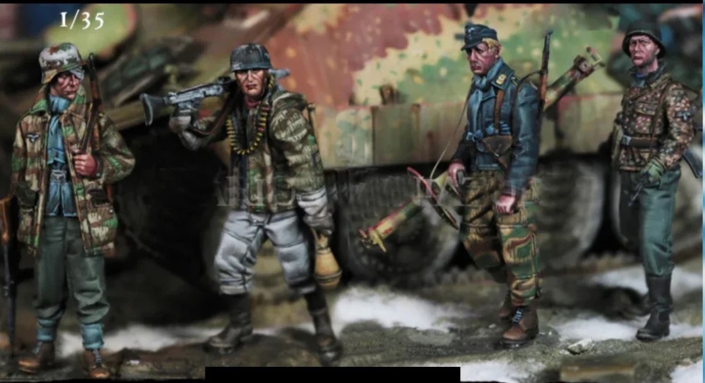 ■ 1/35 WWII ドイツ 空軍 降下猟兵 武装親衛隊 兵士 4名 樹脂 模型 ■ 未塗装 未組み立て レジン 樹脂 フィギュア Q201