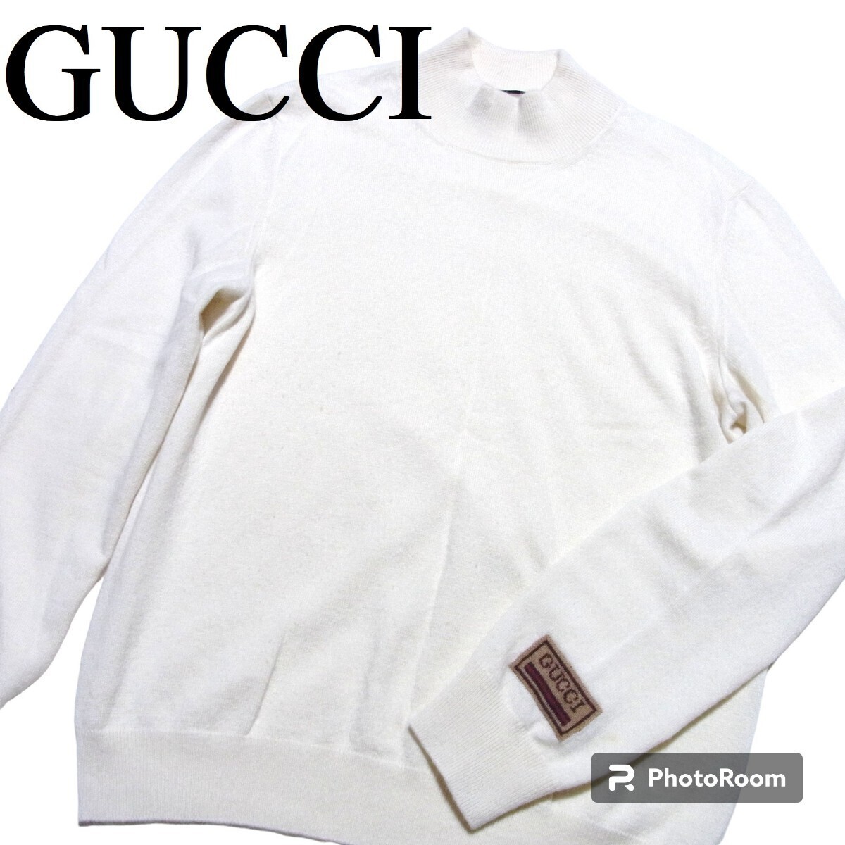 ★商品名…定価20万 GUCCI グッチ ロゴ パッチ カシミヤ タートルネック ニット セーター XL オフホワイト 694752 XKCD3