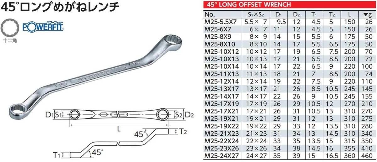 京都機械工具(KTC) 45度ロングメガネレンチ M25-8X10