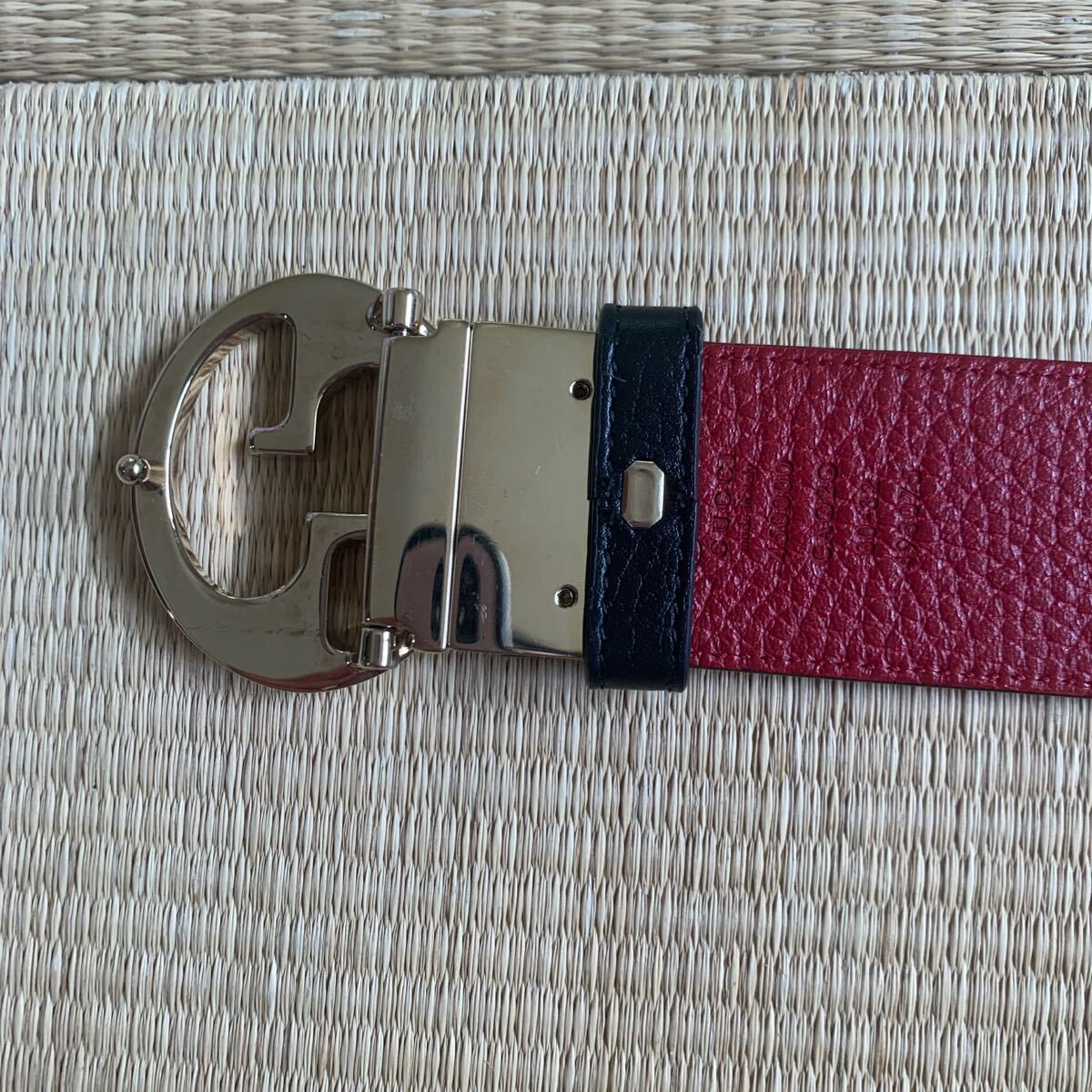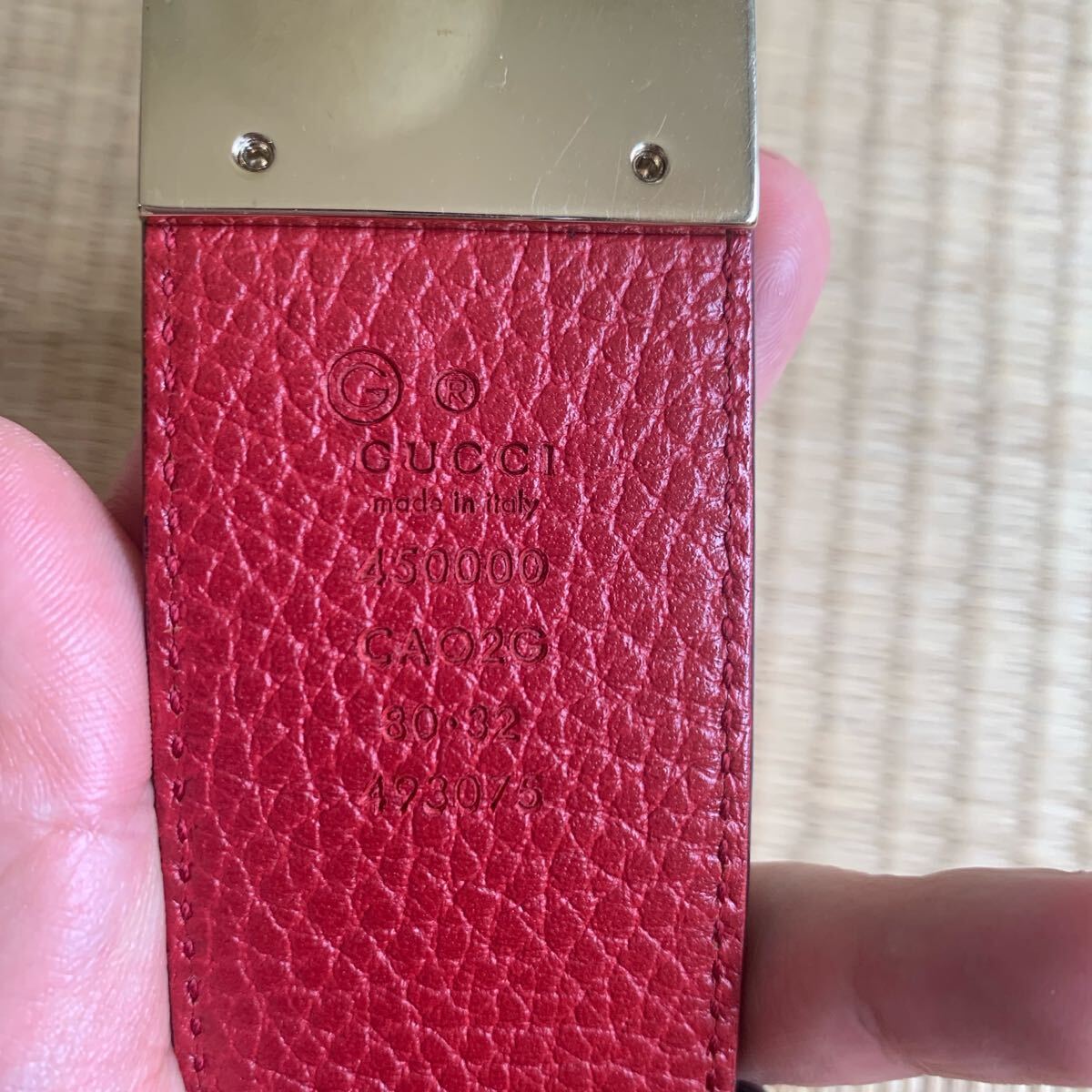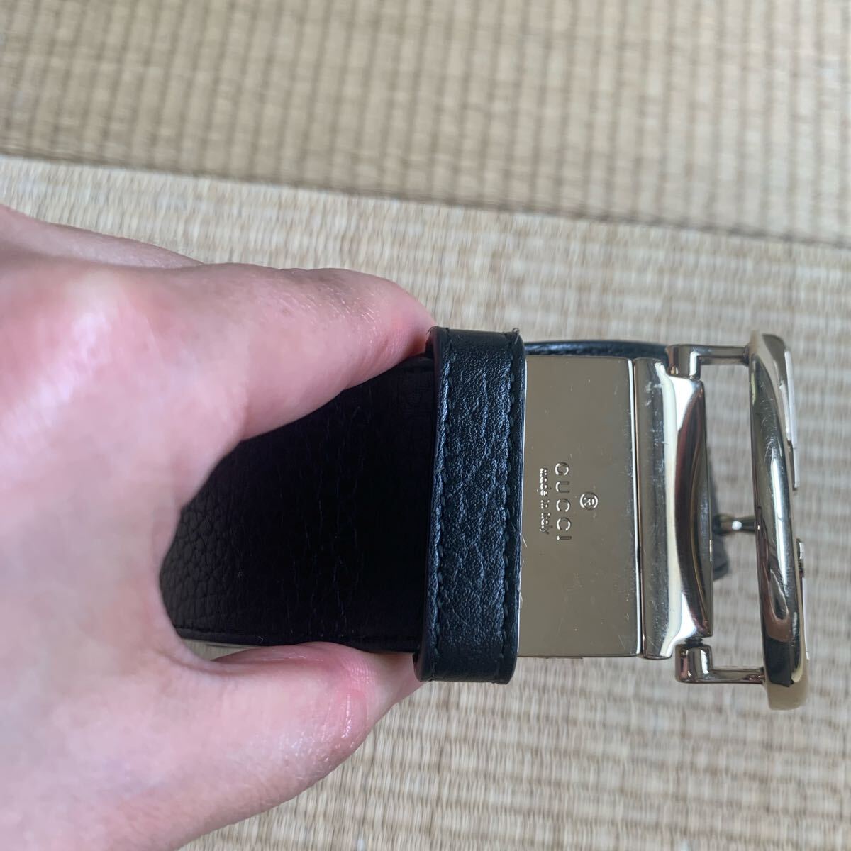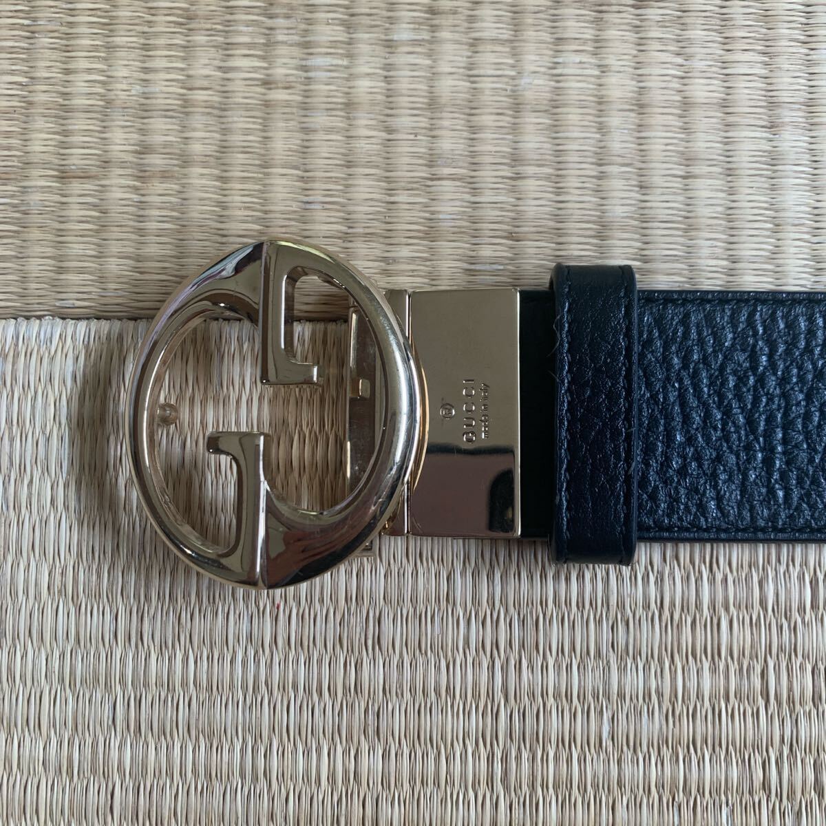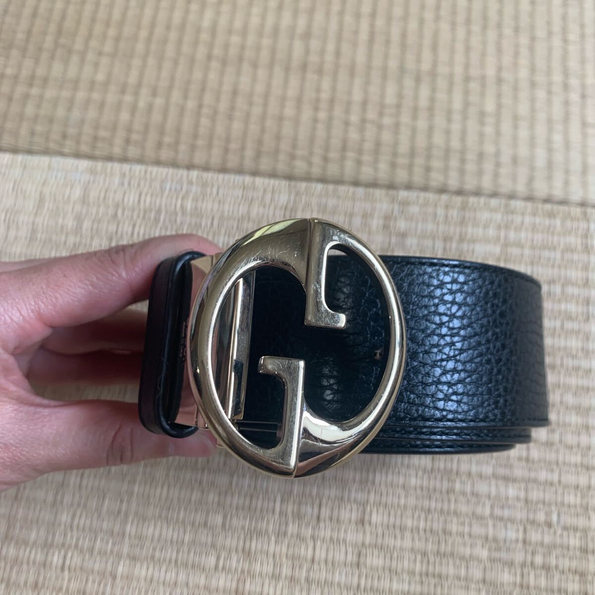 正規店購入、GGロゴの金具が特徴的なレザーベルト。