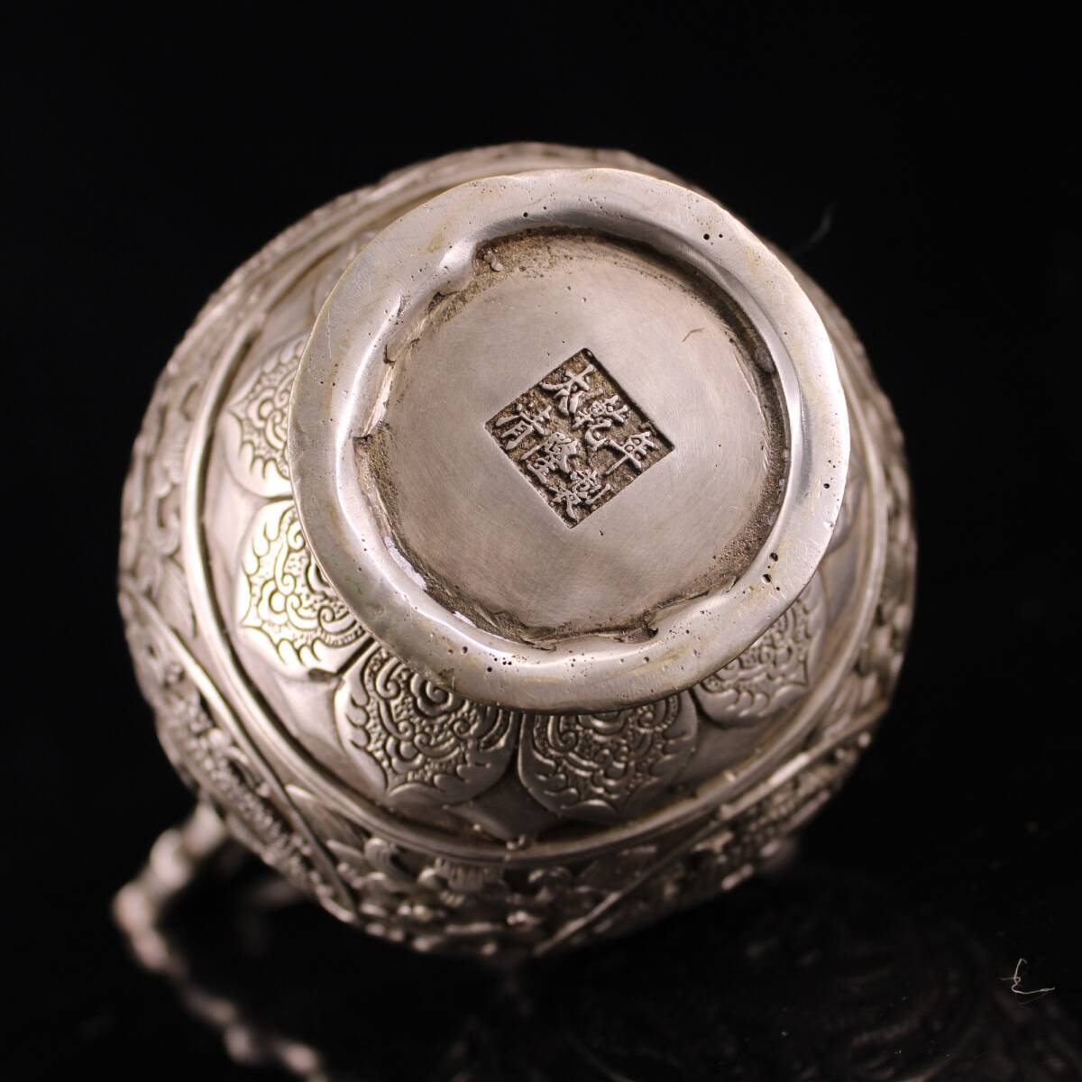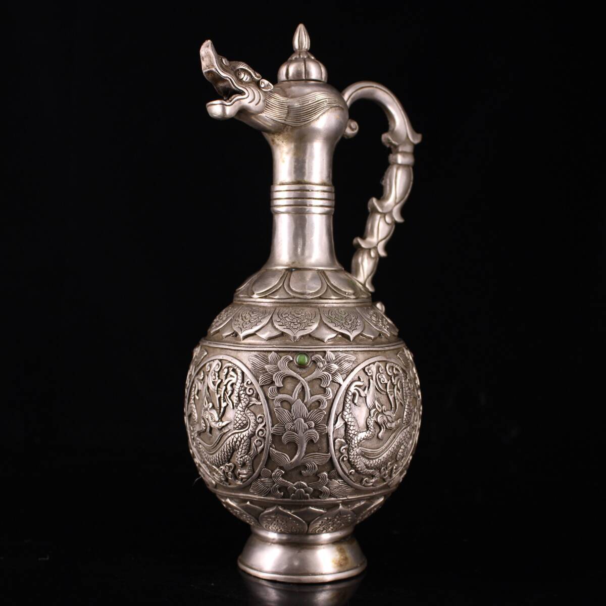 【超珍館蔵】銅製 銀鍍 寶石嵌 龍紋酒壺 置物 賞物 古賞物 古美術品 稀少珍蔵品