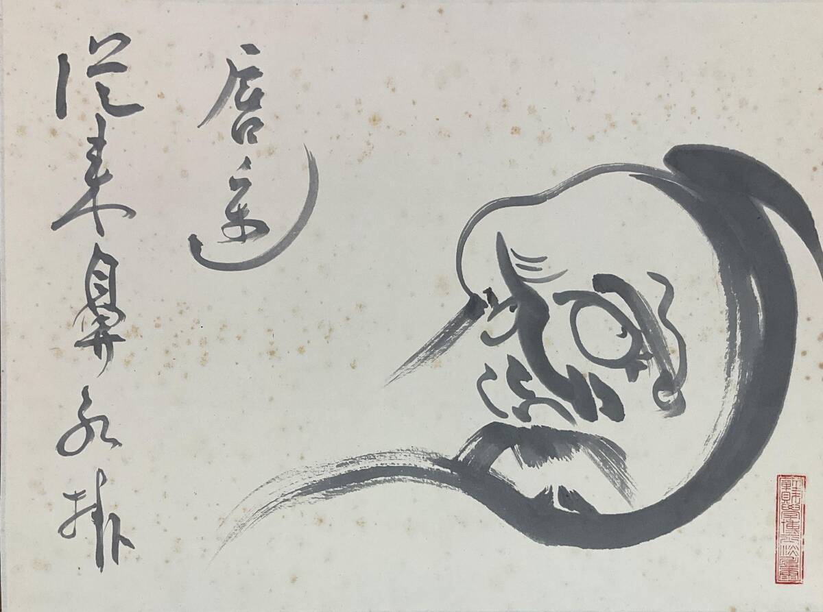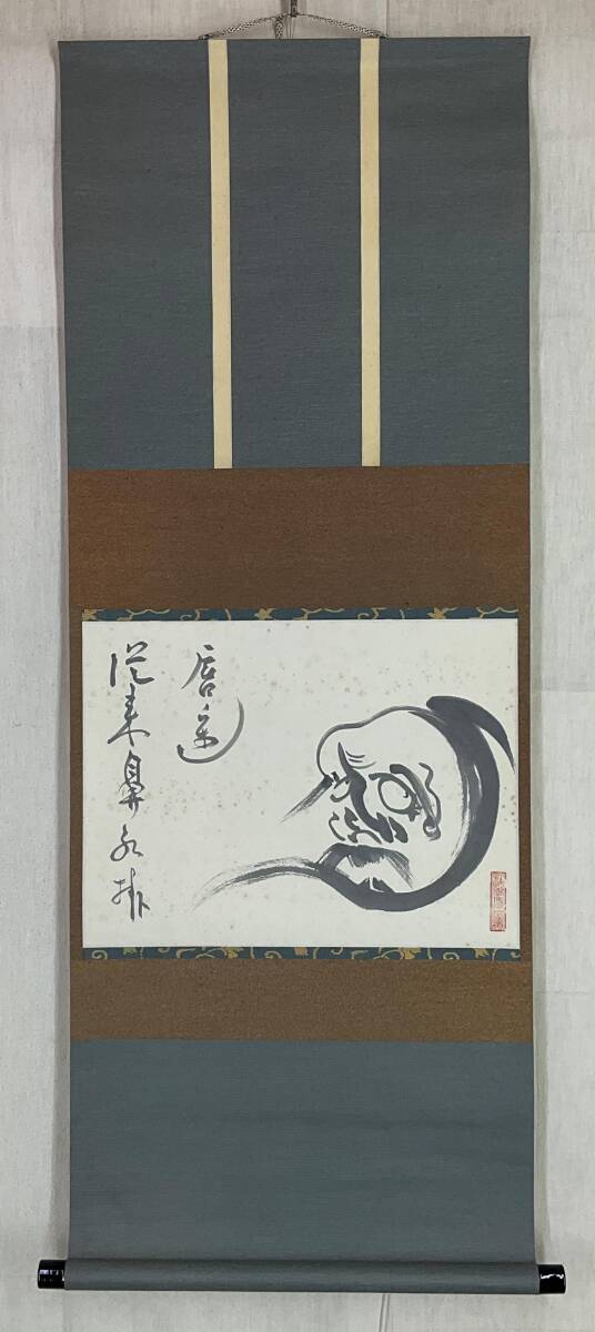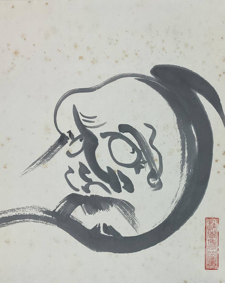 【真作】《掛軸》淡川康一 淡川庵 「達磨大師像」 共箱 禅画研究家 京都