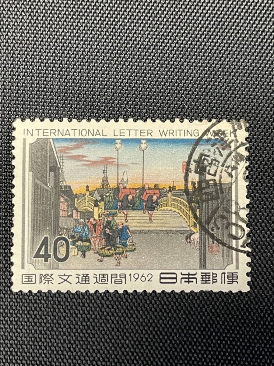 【希少】1962年 国際文通週間 40円切手「江戸日本橋」使用済み(管理番号ST4024)