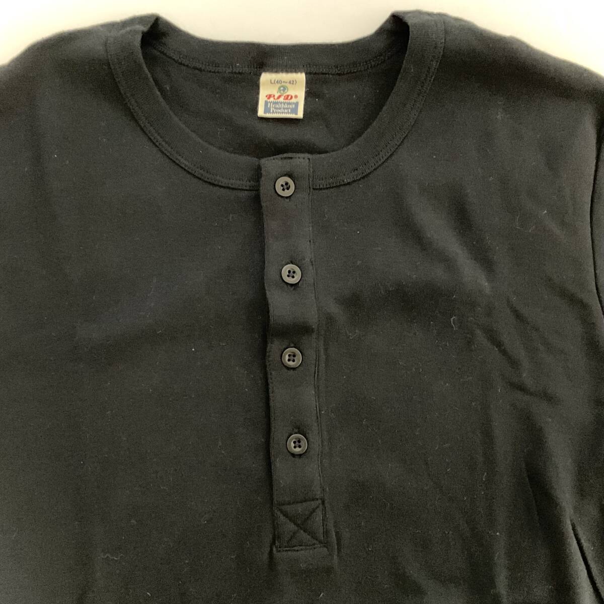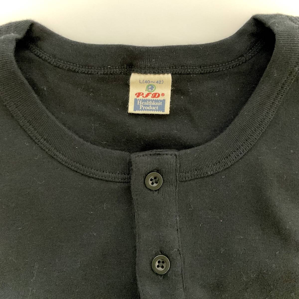 未使用 Tシャツ Healthknit PRODUCT フライス/ヘンリーネック ブラック/サイズL    M219