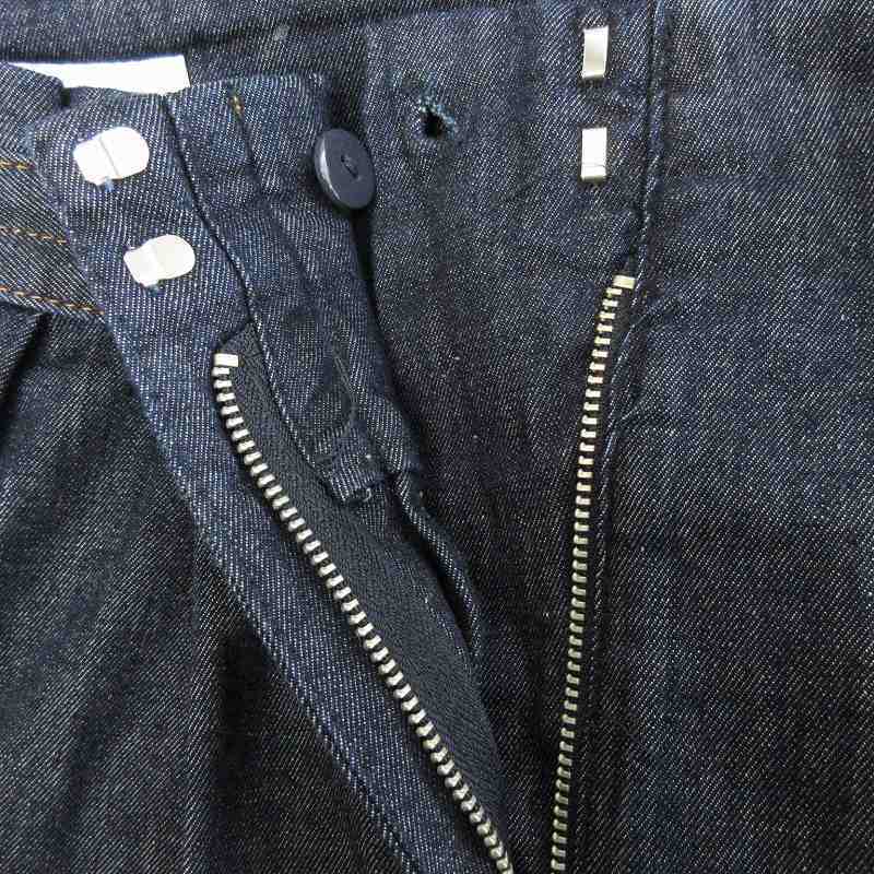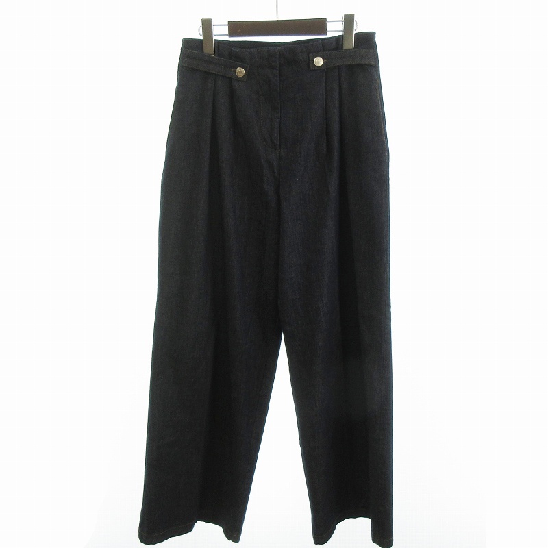 ザラ ZARA デニムパンツ ワイド タック 無地 ジッパーフライ 紺 ネイビー XS レディース