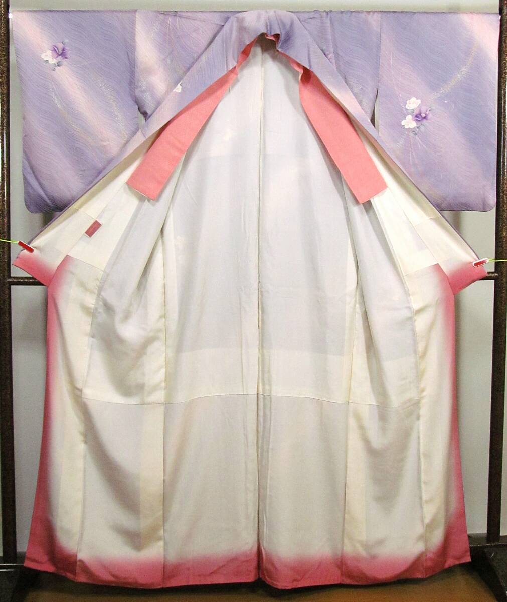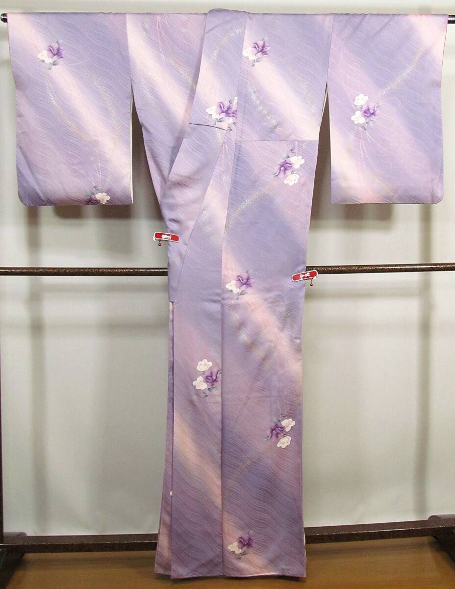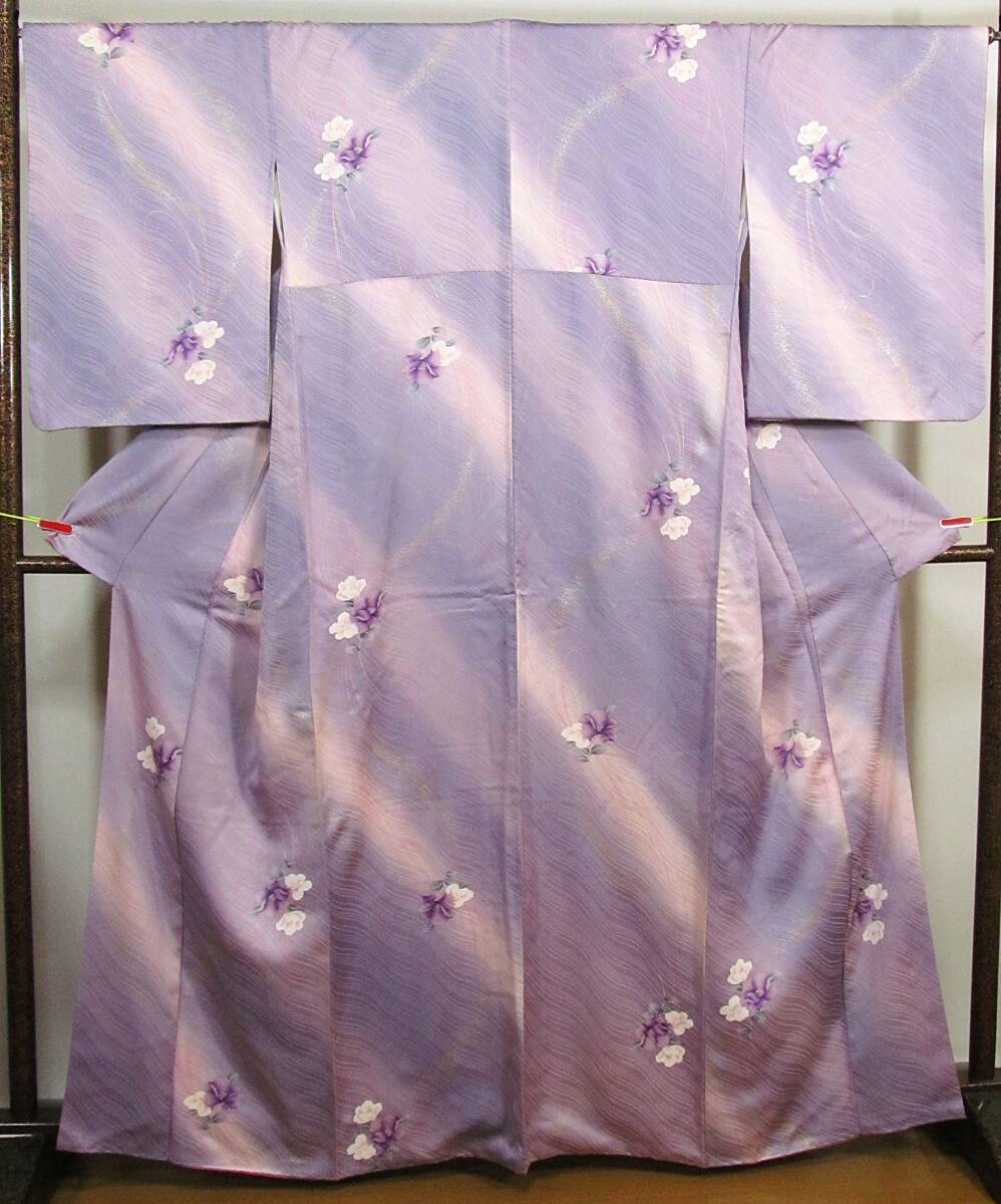 ね86 正絹 小紋着物 花柄 身丈164cm