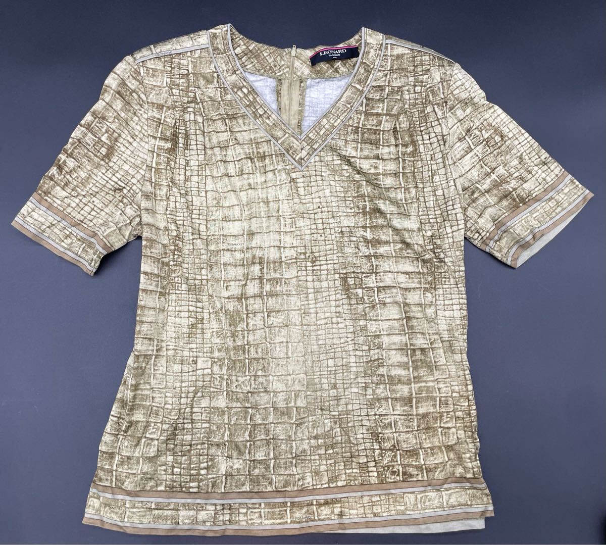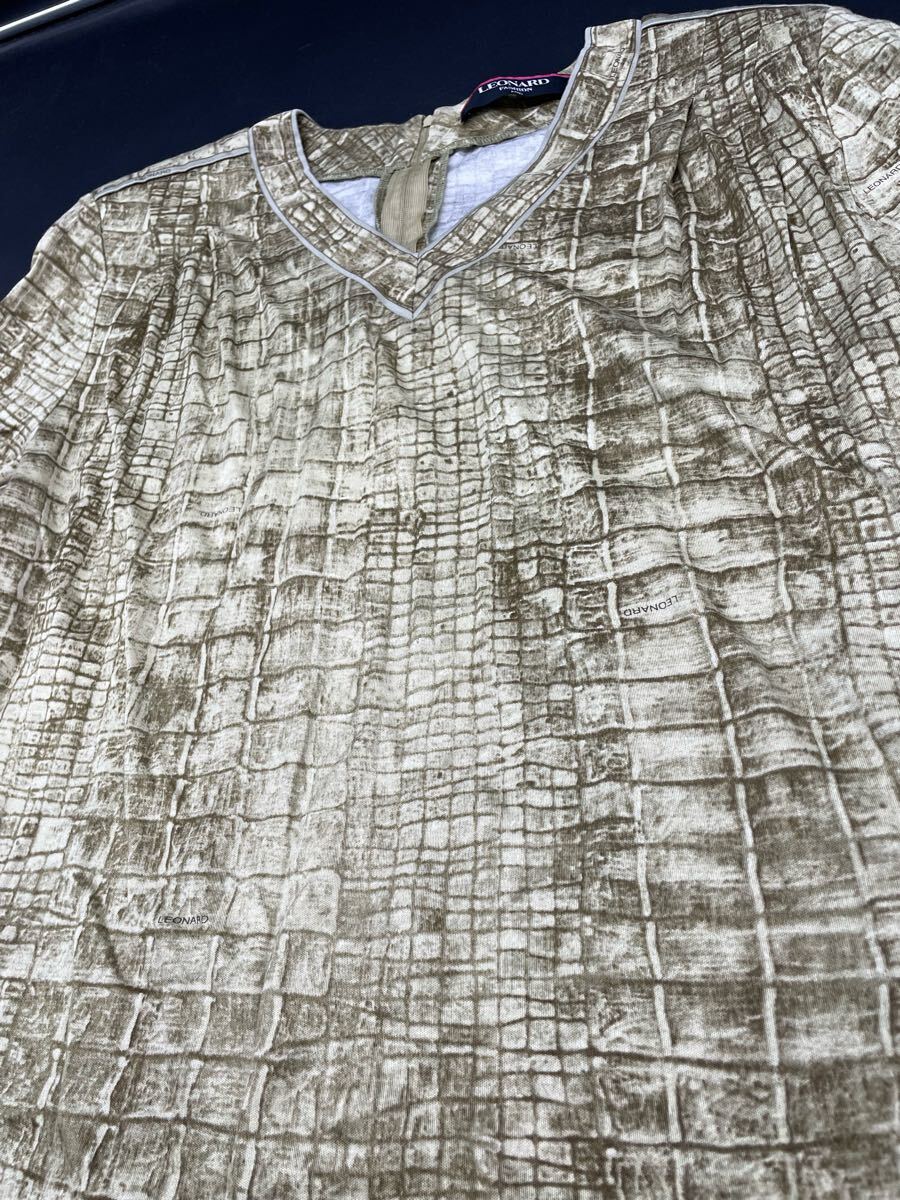 【美品】LEONARD FASHION(レオナール ファッション)半袖 Tシャツ カットソー トップス Vネック 総柄 サイズ L