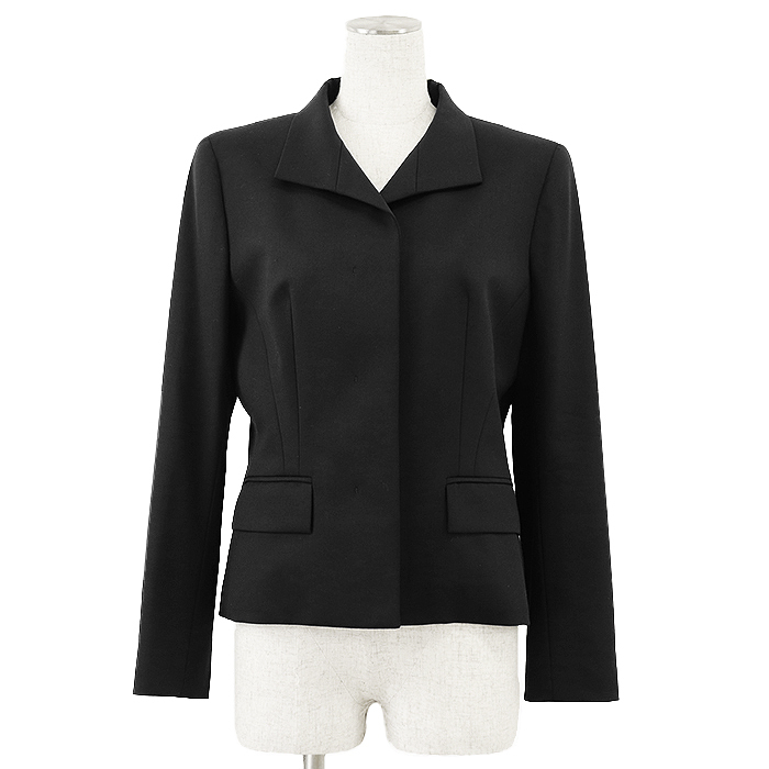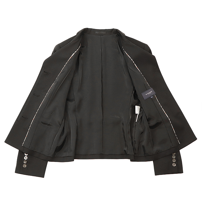 BURBERRY LONDON バーバリーロンドン ジャケット テーラード 3B 開き見せ ストレッチ ウール混 シグネチャー ロゴ ボタン レディース 40 黒