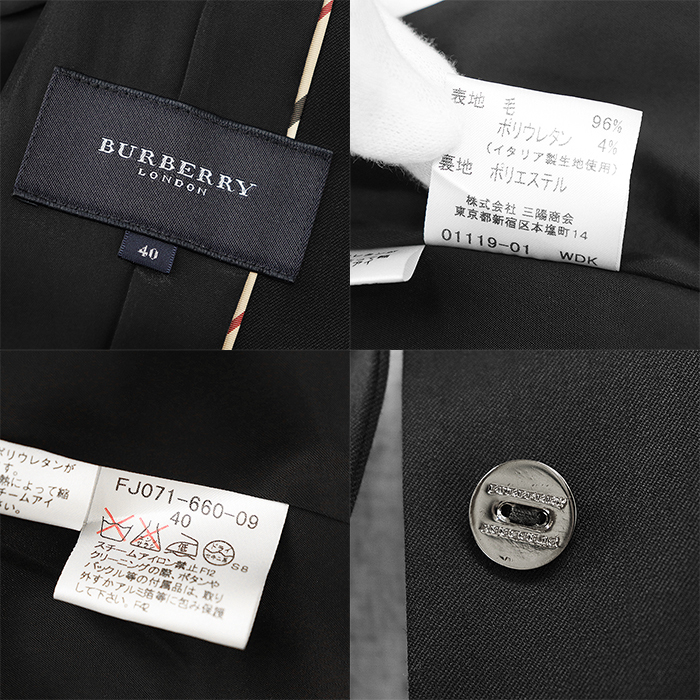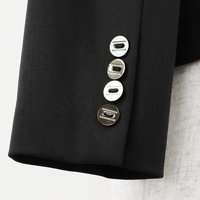 シリーズBURBERRY LONDON バーバリーロンドン ジャケット テーラード 3B 開き見せ ストレッチ ウール混 シグネチャー ロゴ ボタン レディース 40 黒