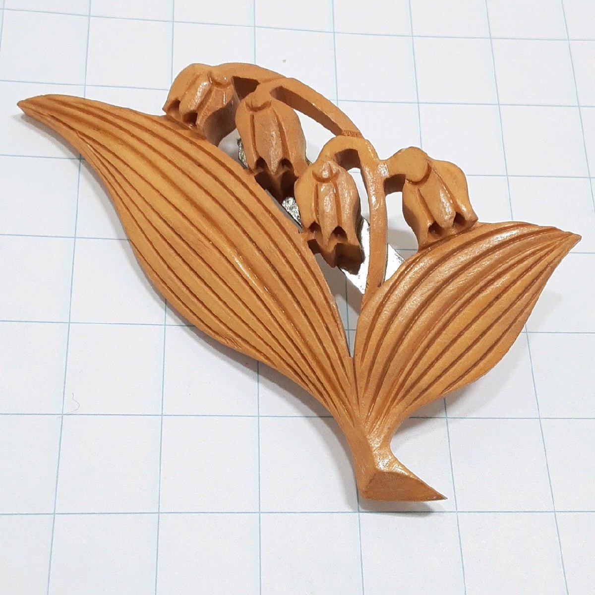 送料無料)ビンテージ☆木彫り すずらん☆アンティーク ブローチ A29634