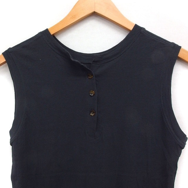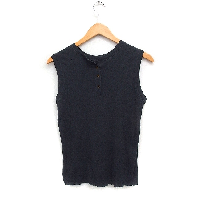 トゥモローランド TOMORROWLAND コットン ニット タンクトップ カットソー ノースリーブ 丸首 無地 S チャコール /FT29 レディース