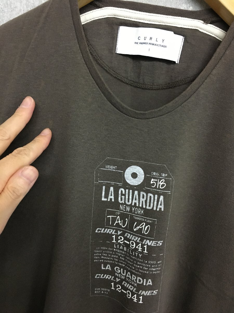 ◆CURLY カーリー 荷札ロゴ プリント Tシャツ チャコール サイズ1 日本製 一部色褪せあり