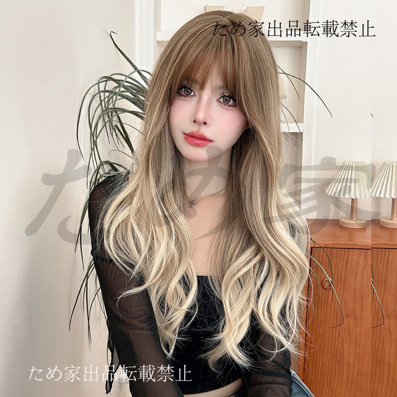 新品人毛 ロングカールウィッグ リネージュライトブラウングラデーション 欧米風 つむじ部分手植え 自然に見えますフルウィッグ