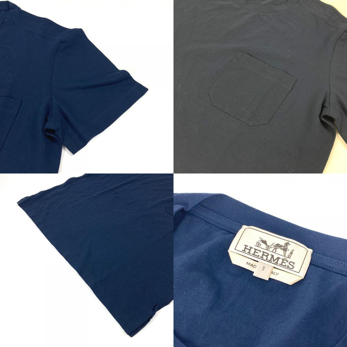 美品 HERMES エルメス ポケット アパレル トップス 半袖 半袖Tシャツ ネイビー メンズ【中古】