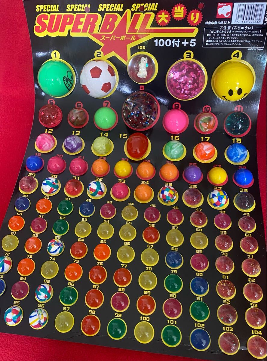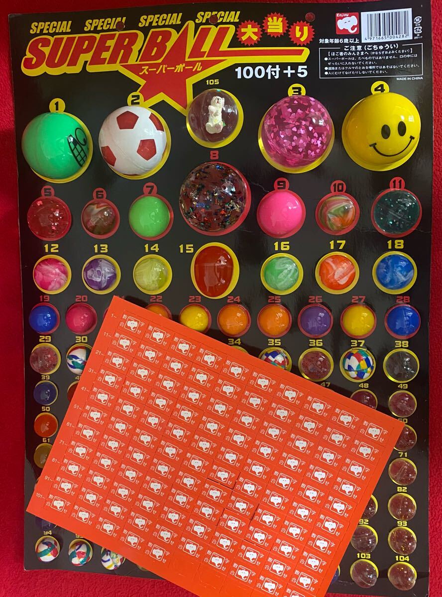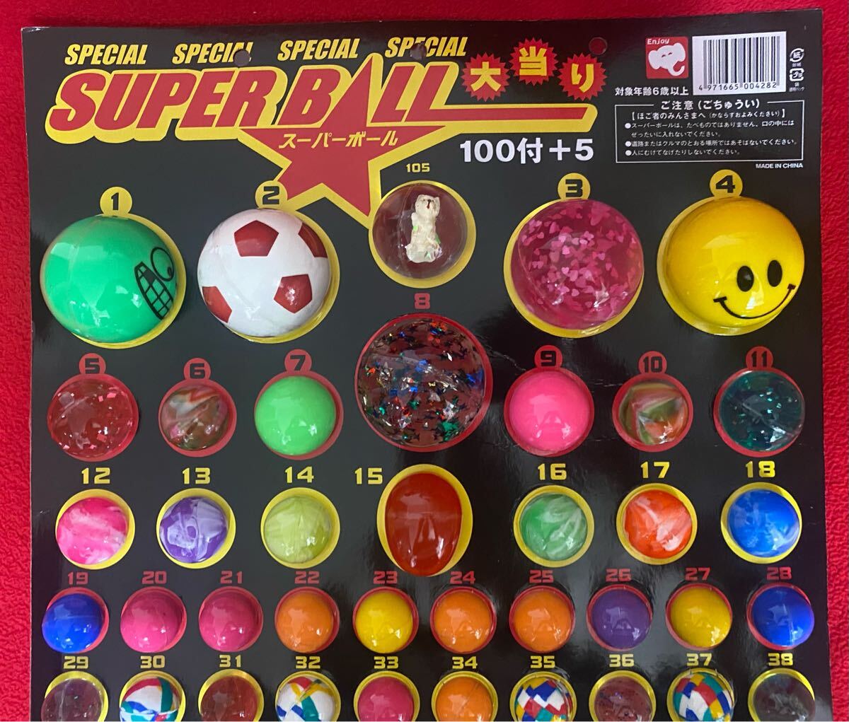 イベント、学園祭、フェアー、子供会、誕生会など みんなが集まったら”くじ物”ですね。くじ物台紙:特価!バライティスーパーボール当て/100付+5 綺麗なスーパーボールの大小が当たる!台紙当て!1セットでの出品です 大きなサッカースーパーボール キラキラ、スマイルなどのスーパーボールが当たるデラックスタイプのスーパーボール台紙当ての登場です!スーパーボールの大 小が当たる 番号くじ台紙です。全てスーパーボールがセットされています!盛り上がること間違い無し。スーパーボールのサイズは6種類 様々なデザインのスーパーボールが当るデラックスタイプ 小さい方から 直径22mm66個/27mm11個/32mm8個/42*35mmの卵型1個/37mm4個/48mm1個 /サッカーやキラキラなどの特大サイズ58mm5個の合計105個です 絵柄やサイズが豊富で レインボーやキラキラ、カラフルなど大小様々な楽しいデザインがいっぱいです 尚 可能な限り掲載の写真の商品をお届けいたしますが 商品の性質上 くじ物商品でございます掲載写真のものと製造時のセットアップが若干違う場合もございますので ご了承下さいませ 100名様分 プラス5 105回分 数字合わせくじで楽しめますおまけ 台紙サイズ370*515mm 全部スーパーボールです 数字合わせくじのシートサイズは215*270mm 新品 未使用 宅配便にてお届け致します!宅配便配送料¥1000(中国地方5県はプはプラス¥200、東北地方6県、九州地方7県、四国地方4県はプラス¥300、北海道はプラス¥800、沖縄は1500プラス)にてお届け致します。お祭りやイベントに「くじ物」はパフォーマンスするものです 番号合わせてで当てる台紙くじ、つかみ取りなどで楽しみます!まとめて取引にも対応しています 下記出品ページを ご参照下さいませ タイトル イベントに当たり物!でございます 尚 この商品には希望落札価格が設定されております。出品商品につきまして わからない事のある場合 お気軽にご質問欄にて ご投稿下さい 迅速に ご返答差し上げます 『ご落札前に私の自己紹介欄を 必ず! ご参照下さいませ 休日情報など最新の情報を掲載しています *お取り引きに関しましての お願いです オークションのルールに従い宜しくお願い致します*