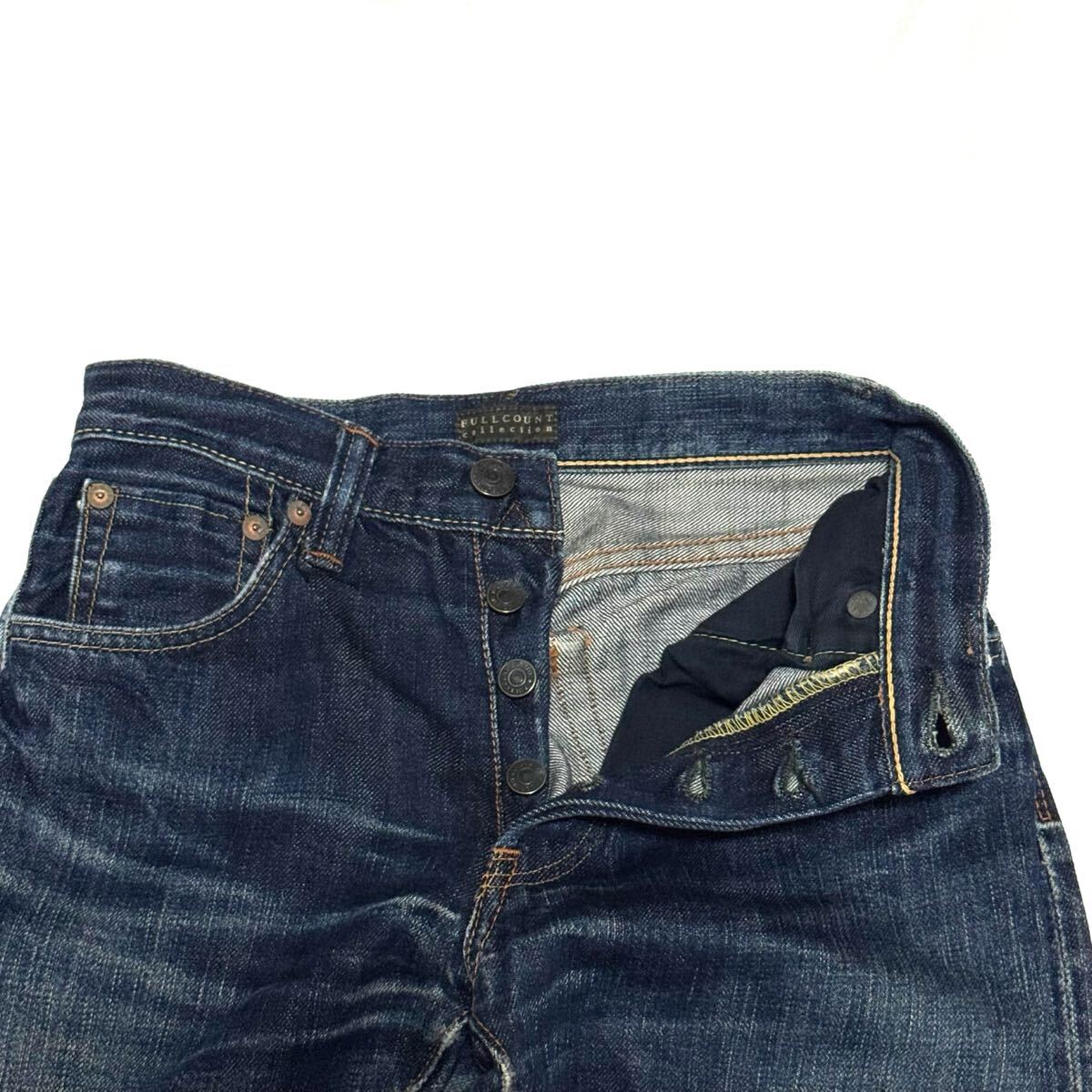 日本製の本格セルビッジデニム。美しい色落ちと自然なヒゲ・ダメージ加工が魅力。ボタンフライや赤耳仕様など、ヴィンテージファン必見の一本。タフな作りながら柔らかく育ち、履くほどに馴染むフルカウントの名作です。