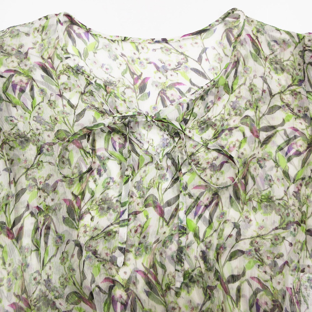 | 【ANAYI アナイ 花柄 フラワー シルク ワンピース リボン 半袖 サイズ38 M グリーン 緑系 レディース】 | |