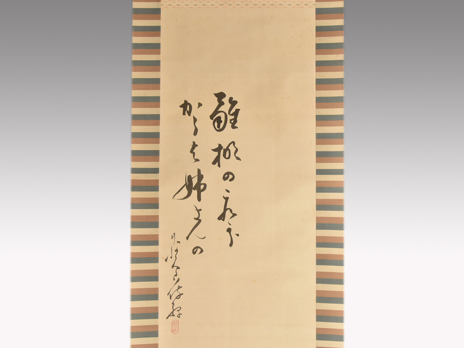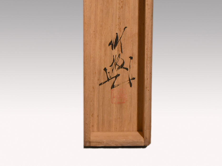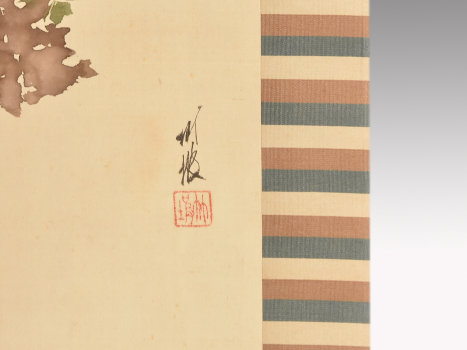 絹本に蝶、菜の花、栄螺が描かれ上に句が書かれております。 句は「雛棚の これからからは 姉さんの」と書かれております。 共箱の上面には「豊かなる 国にうまれし 女かな」 僅かに糊シミが出ておりますが良い状態です。 表具も良く、軸先も蒔絵が施されております。 ※撮影の際に生じた写り込みなどがございます。 ご理解の程よろしくお願い致します。 |