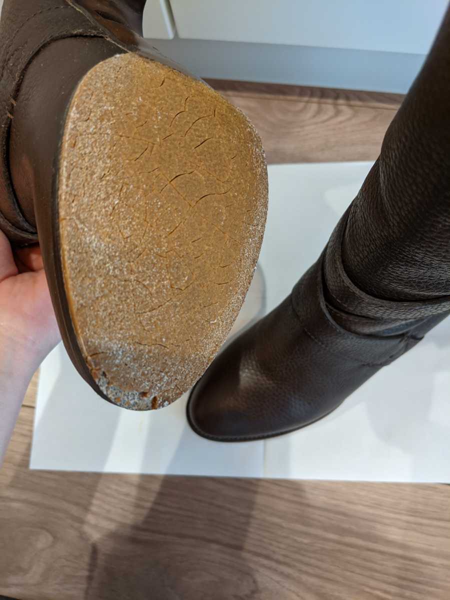 未使用ですが保管中に右爪先の裏張り(底ゴム張り)がポロポロと取れてしまいました。他の部分も取れてくる可能性あります。