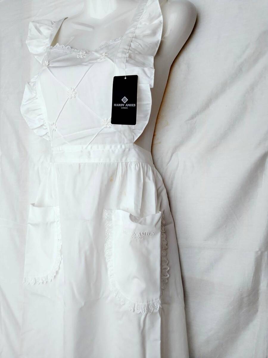 新品★即決★送料無料★HARDY AMIES ハーディエイミス 高級 英国 ロイヤル ロンドン エプロン フリル レース 白 無地