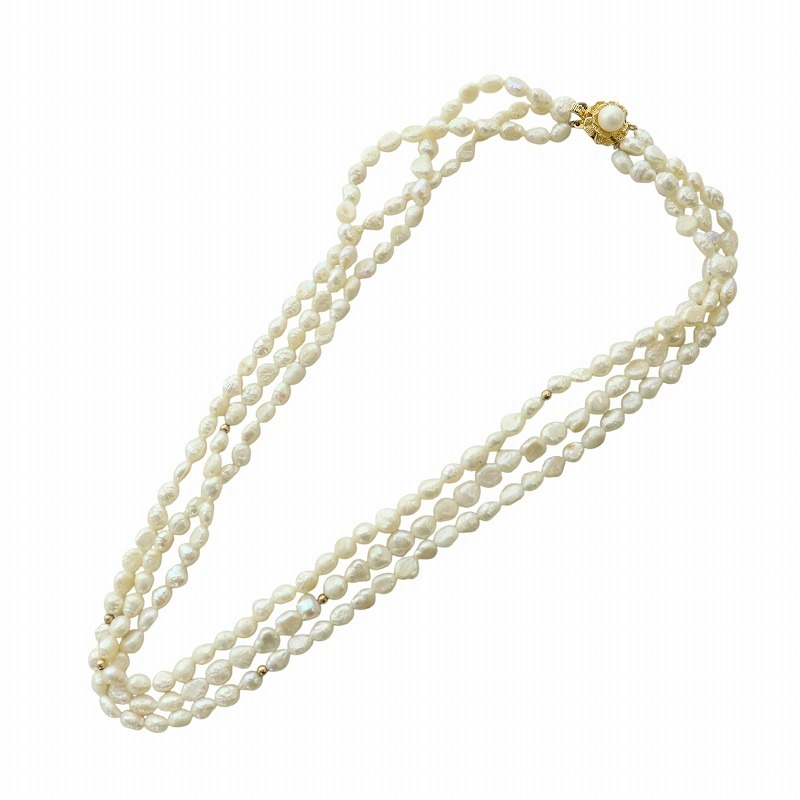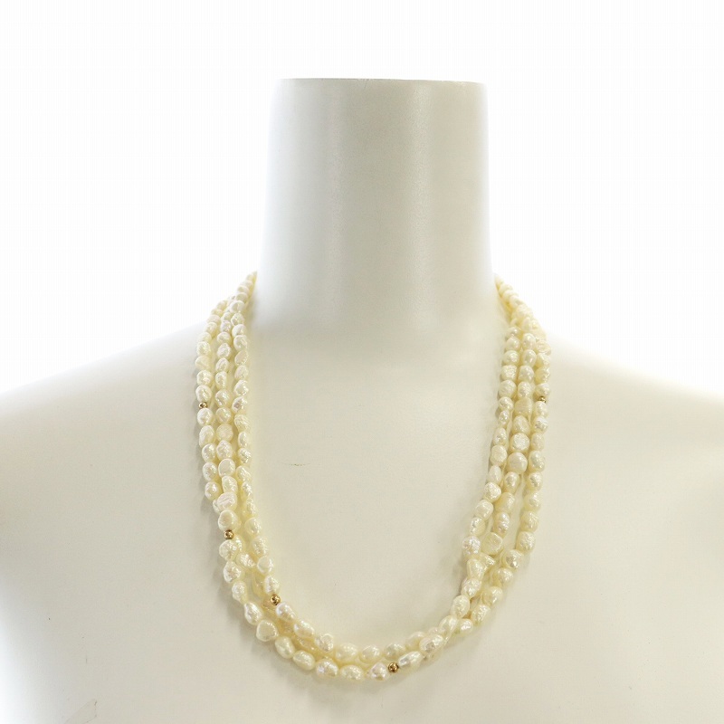 ノーブランド品 ネックレス アクセサリー バロックパール 真珠 3連 シルバー925 アイボリー ■GY11 /MQ レディース