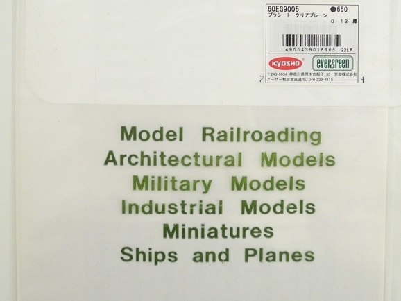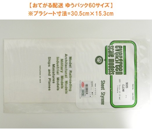 エバーグリーン(京商扱い品)【60EG9005】「プラシート クリアプレーン0.13mm厚 30.5×15.3cm×3枚入」※小袋未開封・未使用品、状態難あり