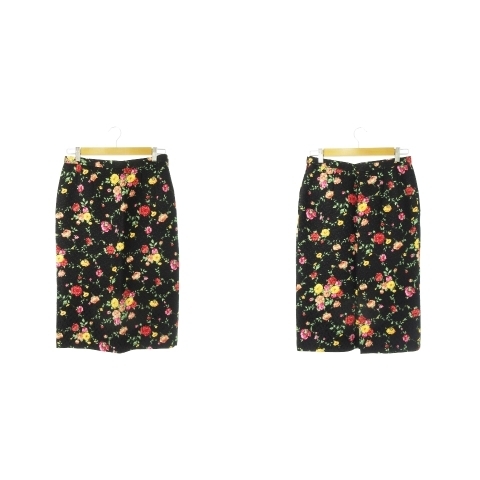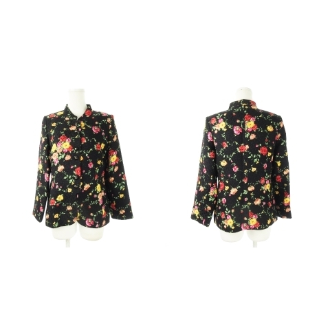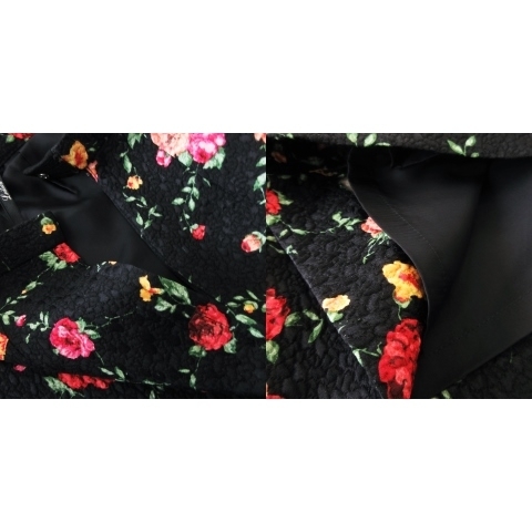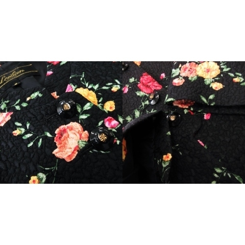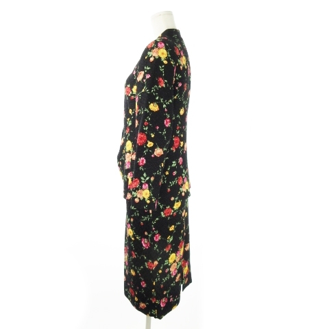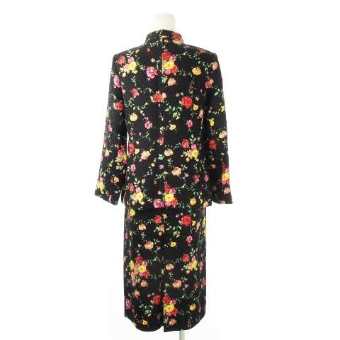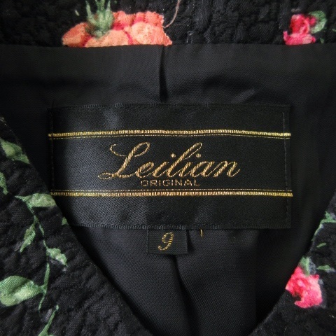 レリアン Leilian セットアップ スーツ ジャケット タイトスカート エンボス サテン プリント ローズ 花柄 9 黒 ブラック /CK28